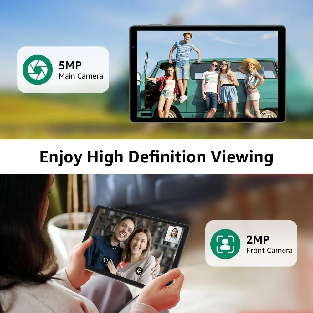 Sensory Bliss Unleashed — Embark on a sensory odyssey like no other. Equipped with dual speakers and dual cameras, our tablets redefine multimedia immersion. Capture life’s fleeting moments with unparalleled precision through our dual-camera setup, featuring a 5 MP front camera and a 2 MP rear camera. From cinematic soundscapes to cherished memories, each interaction transcends into a realm of creativity and enjoyment that knows no bounds.
