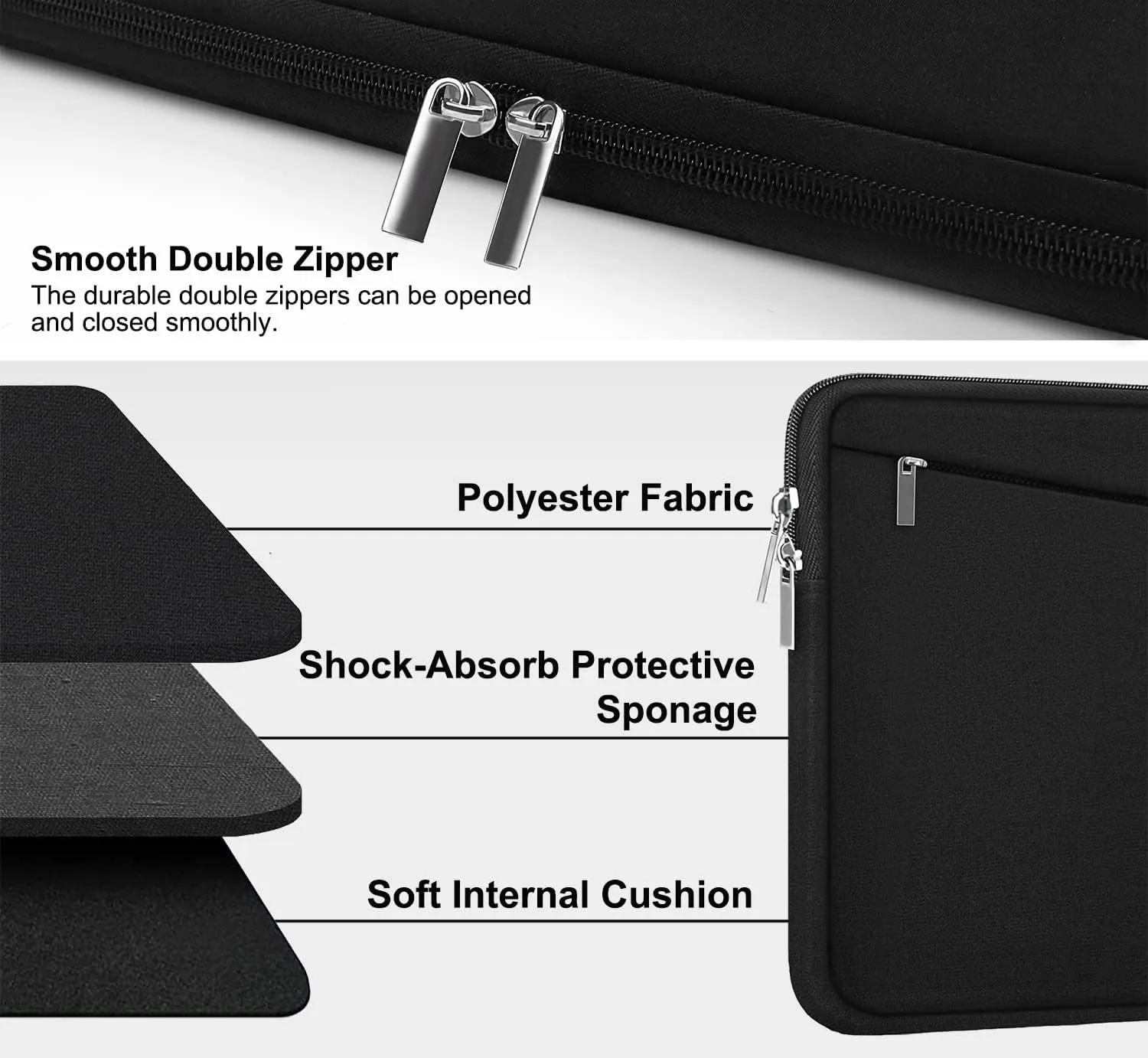 SLIM AND LIGHTWEIGHT: This Laptop Case provides basic laptop protection with a casual design, and the laptop sleeve can easily slide into a briefcase, backpack or other bags. The top loaded zipper on the sleeve slides smoothly for easy access to your laptop. Perfect for business or travel. Your great laptop companion!