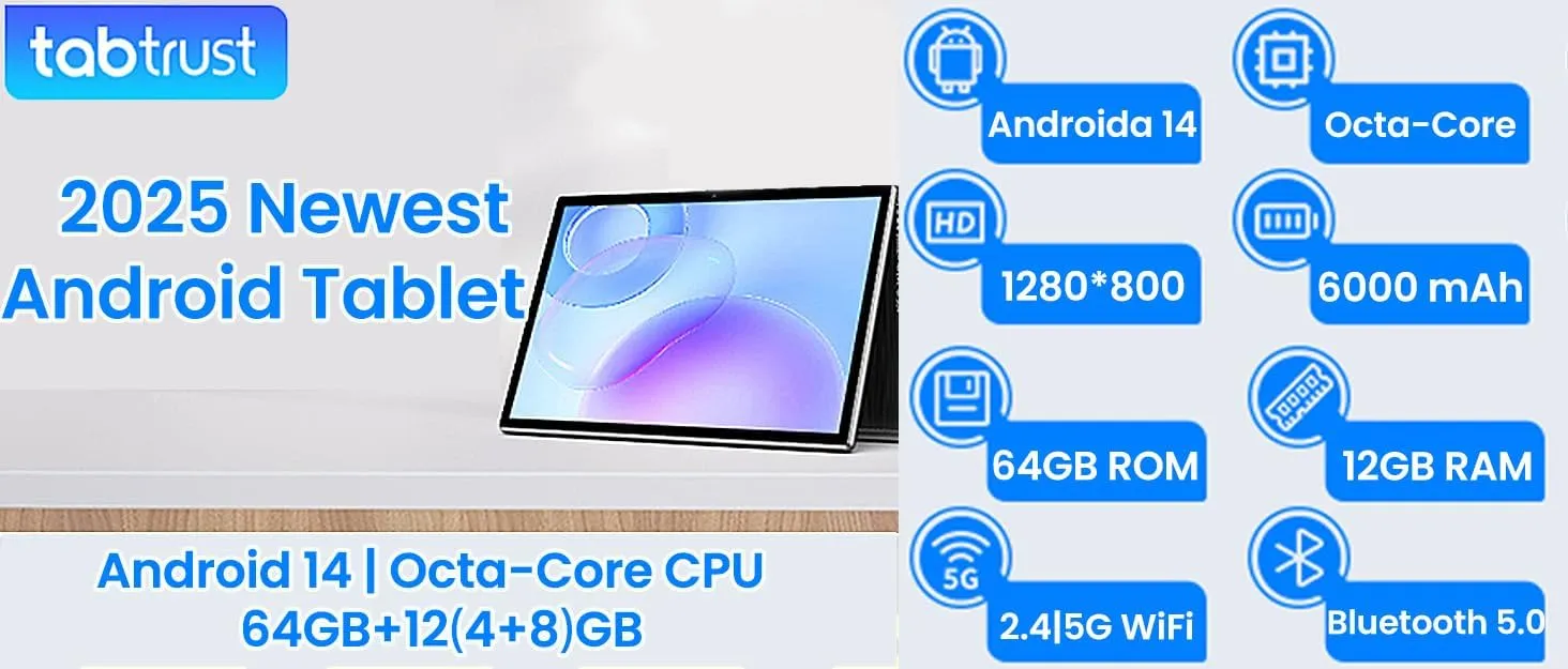 2025 Android 14 Tablet Newest Octa-Core Powerful Processor 2.0 GHz, Widevine L1