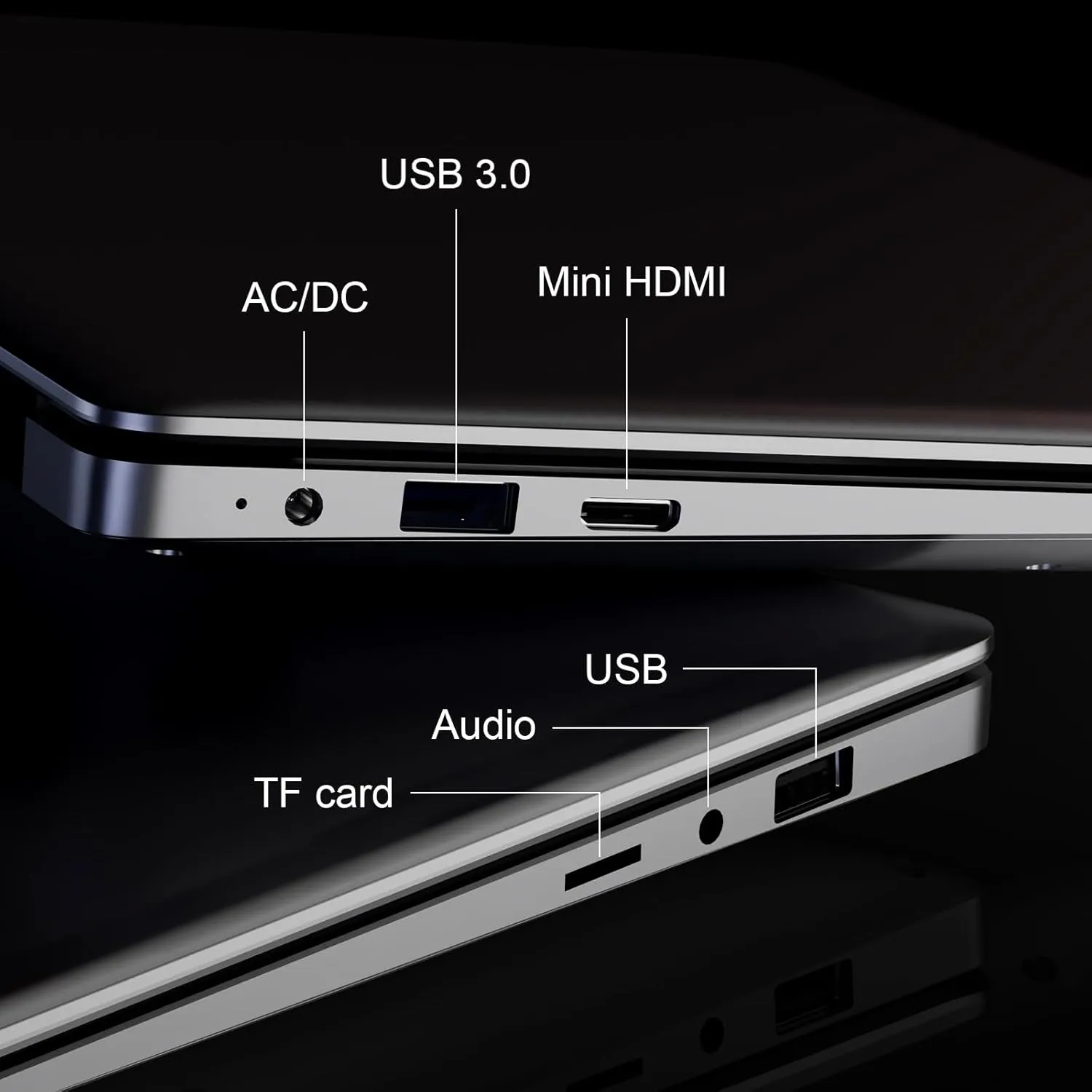 【General Configuration】Traditional notebook computers has a Intel HD Graphics 600 and a 14-inch screen, the 1920*1080p FHD anti-glare screen effectively reduces light interference.It also comes with Ultrabook is equipped with Mini HDMI x1, USB 3.0 interface x2, 3.5mm headphone jack x1, TF slot x1, charging interface x1, etc. Multiple interfaces to meet the interface needs of your arbitrary connection.