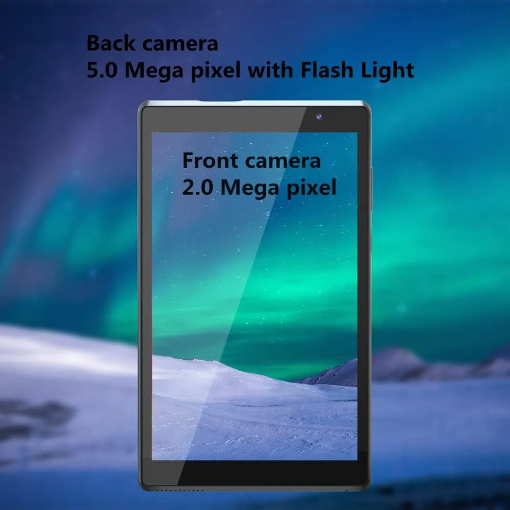 Front 2.0 Mega pixel, Back 5.0 Mega pixel camera with Flash Light, Support Bluetooth, 32GB Storage, 1080P Videos. Meets Reading, Photograph, videos, Music, etc. Suitable for Most Life Scenarios.