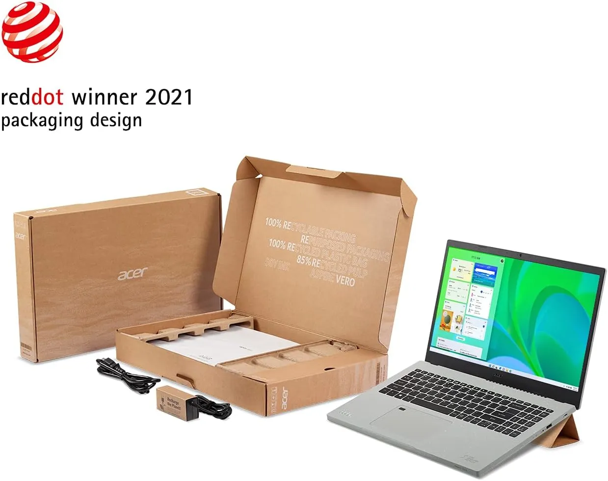 Acer Aspire Vero AV15-51-7617 comes with these high level specs: 11th Generation Intel Core i7-1195G7 Processor 2.9GHz with Turbo Boost Technology up to 5.0GHz (12MB Smart Cache), 15.6″ Full HD (1920 x 1080) Widescreen LED-backlit IPS Display (100% sRGB and 300nit Brightness), Intel Iris Xe Graphics, 16GB DDR4 Memory, 512GB NVMe SSD, True Harmony Technology, Two Built-in Stereo Speakers, Acer Purified.Voice Technology with AI Noise Reduction & Two Built-in Microphones, 802.11ax Wi-Fi 6 Dual-Band 2.4GHz and 5GHz featuring 2×2 MU-MIMO technology, 10/100/1000 Gigabit Ethernet LAN (RJ-45 port), Bluetooth 5.0, Acer Bio-Protection Fingerprint Solution, featuring Computer Protection and Windows Hello Certification, Back-lit Keyboard, HD Webcam (1280 x 720), 1 – USB 3.2 (Type-C) Gen 1 port (up to 5 Gbps), 2 – USB 3.2 Gen 1 Ports (one with Power-off Charging), 1 – USB 2.0 Port, 1 – HDMI 2.0Port with HDCP support, Lithium-Ion Battery, Up to 7.0-hours Battery Life, Amazon Alexa, Acer Vero Protective Sleeve, Windows 11 Home, EPEAT Silver Certified, 3.97 lbs. | 1.8 kg (system unit only) (NX.AYCAA.006). Intel Core i7-1195G7 Processor – up to 5.0 GHz, 4 cores, 8 threads, 12 MB Intel Smart Cache 802.11ax Wi-Fi 6 | Backlit Keyboard | Up to 7.0 Hours Battery Life (MobileMark 2018) | Up to 9.5 Hours Battery Life (Video Playback) | EPEAT Silver Certified | Includes Acer Vero Protective Sleeve | Comes With Windows 11 15.6″ Full HD (1920 x 1080) Widescreen LED-backlit IPS Display (100% sRGB & 300nit Brightness) | Intel Iris Xe Graphics | 16GB DDR4 Memory | 512GB NVMe SSD 1 – USB 3.2 (Type-C) Gen 1 port (up to 5 Gbps) | 2 – USB 3.2 Gen 1 Ports (one with Power-off Charging) | 1 – USB 2.0 Port | 1 – HDMI 2.0 Port with HDCP support | 1 – Ethernet (RJ-45) Port Acer Bio-Protection Fingerprint Solution, featuring Computer Protection and Windows Hello Certification Earthion is our mission to help tackle our generation’s environmental challenges through innovative and integrated solutions.