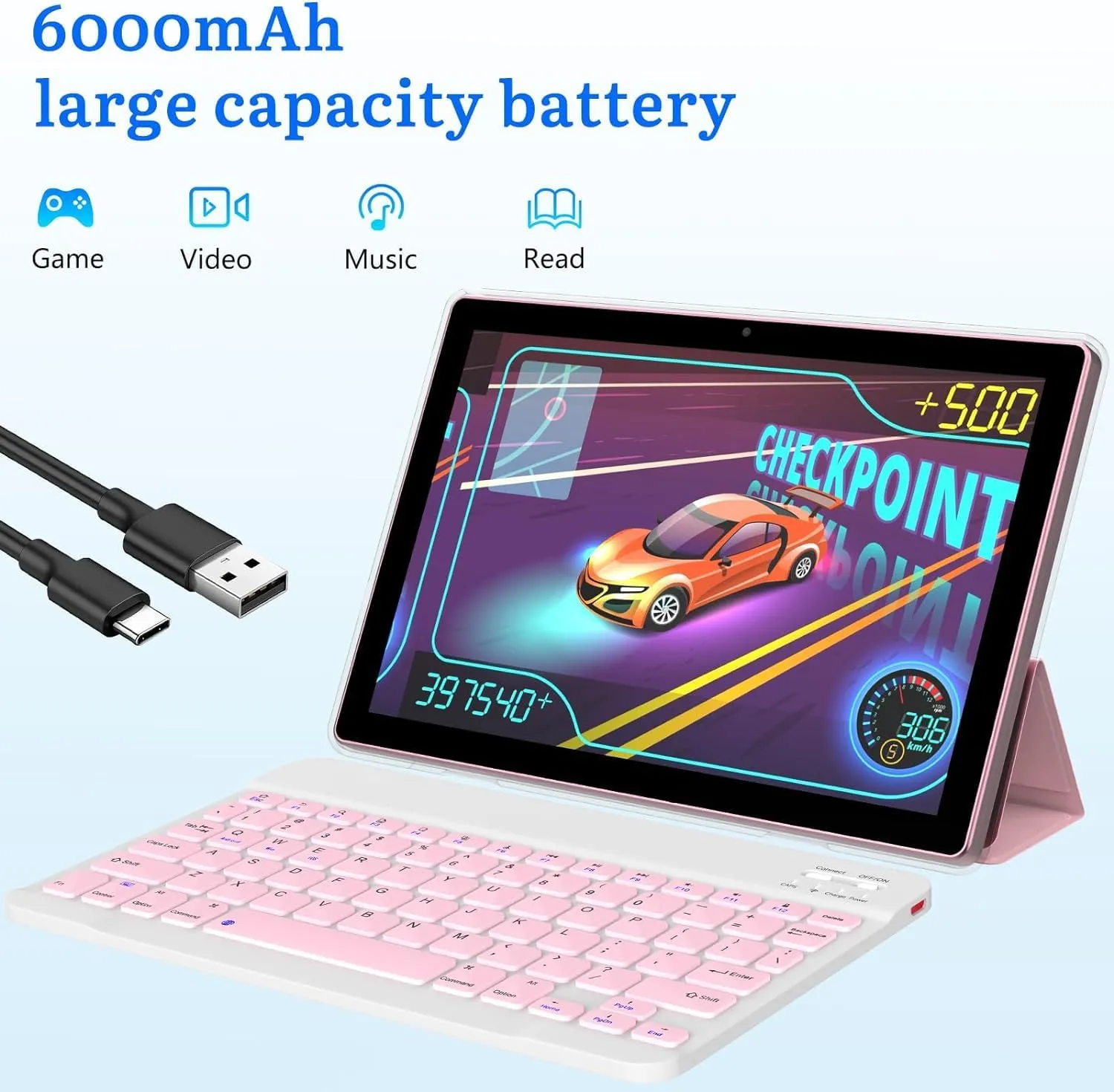 【2.4G/5G WiFi 6+6000mAh】 Our Android 15 tablet lets you enjoy lightning-fast Internet speeds with 5G WiFi connectivity. It makes it easy to stay connected on the go, providing a more convenient experience for entertainment, browsing, gaming and shopping. It also comes with an 6000mAh battery that lasts up to 10 hours on a single charge, perfect for long-distance commuting and travel.