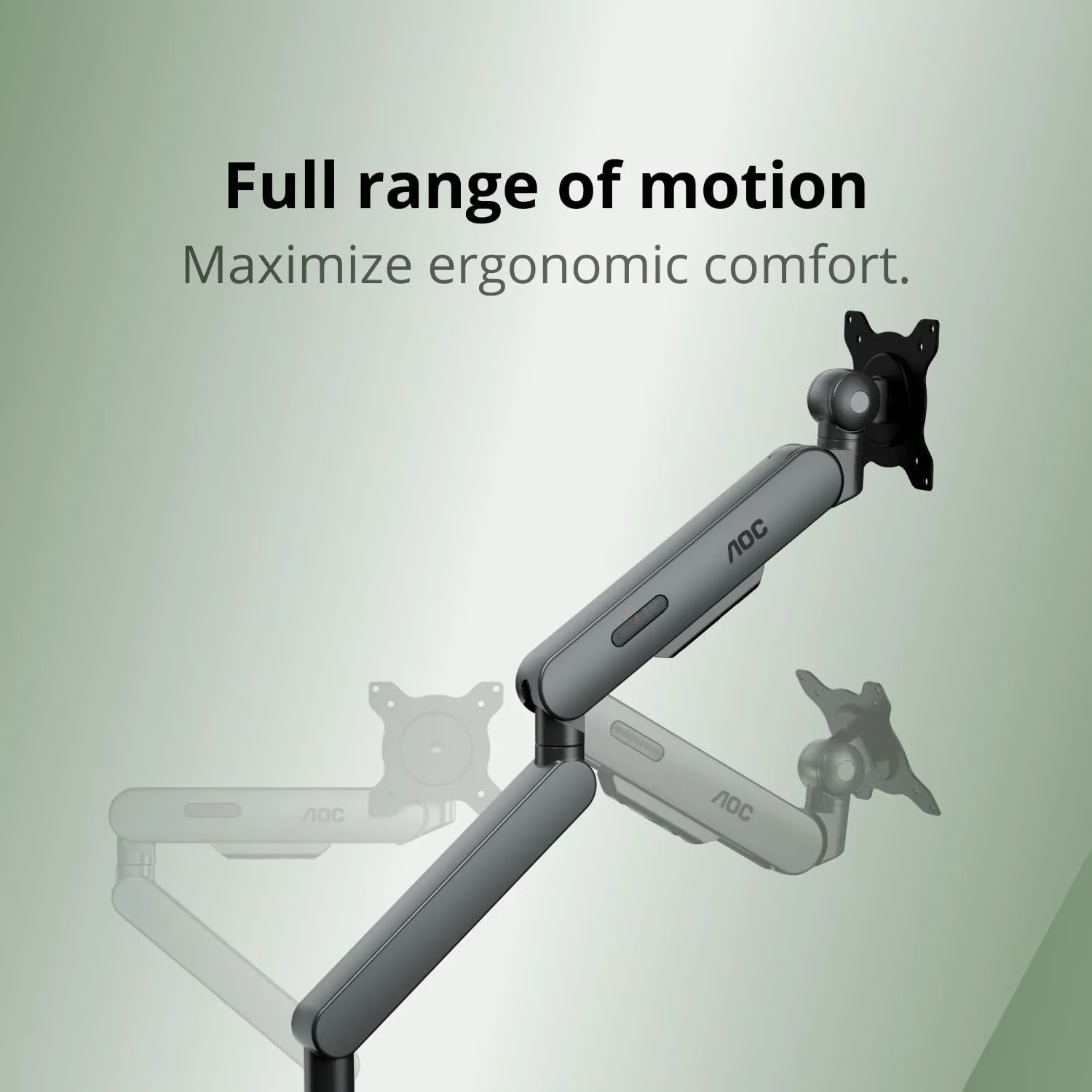 UNIVERSAL AND COMPATIBLE: The AOC AM400G Desk-Mount Monitor Arm is designed to fit screen sizes from 17” to 34”, supporting a weight capacity of 2 to 9 kg, making it ideal for a wide range of monitors.
