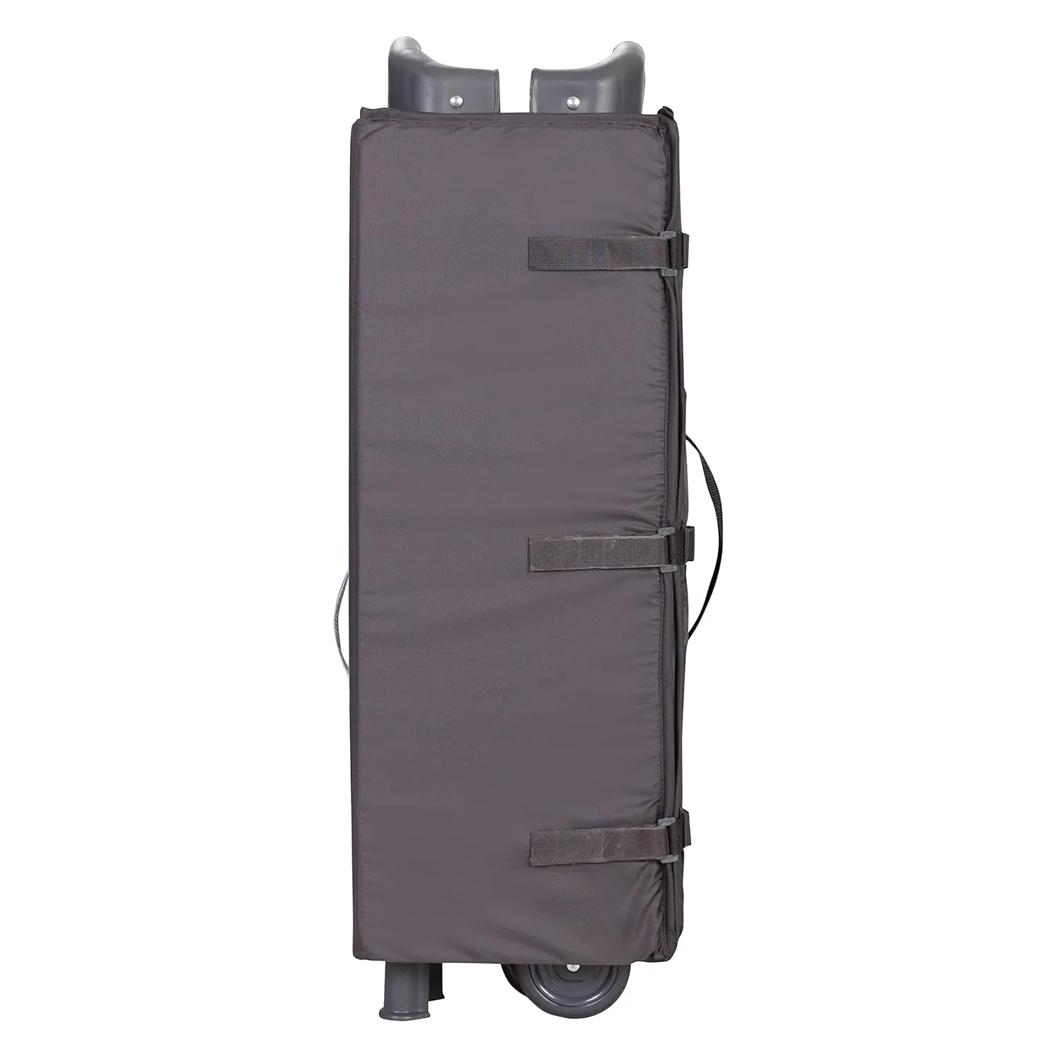 Your little one will feel comfy and secure in the adorable Lil’ Snooze Deluxe II Nursery Center from Baby Trend. The removable napper with canopy is perfect for a little shuteye throughout the day and the hanging toys keep them entertained while awake. Diaper time is a breeze with the flip away changing table and storage pocket for changing essentials. As your baby grows, the nursery center transforms into the ideal play time center and the large caster wheels with brakes provide added mobility and stability. The Nursery Center folds compact and easily fits into the included travel/storage bag for convenient portability.