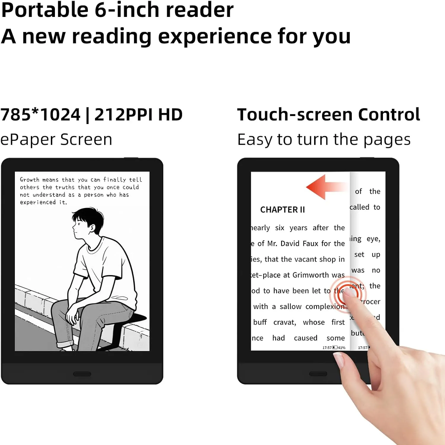 Compact and portable design: Sleek 6″ design of electronic paper makes Bigme READ ebook reader convenient to carry anywhere.