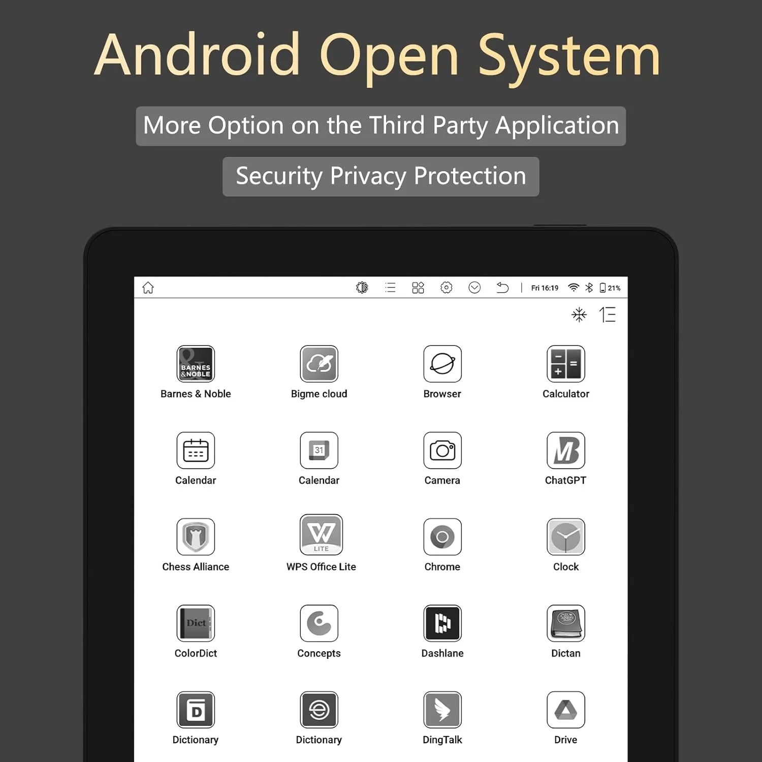 Built-in TF card slot supports up to 1TB of expandable storage. Many book files like epub and PDF formats can be opened with this epaper tablet,enjoying the freedom of choice like never before.