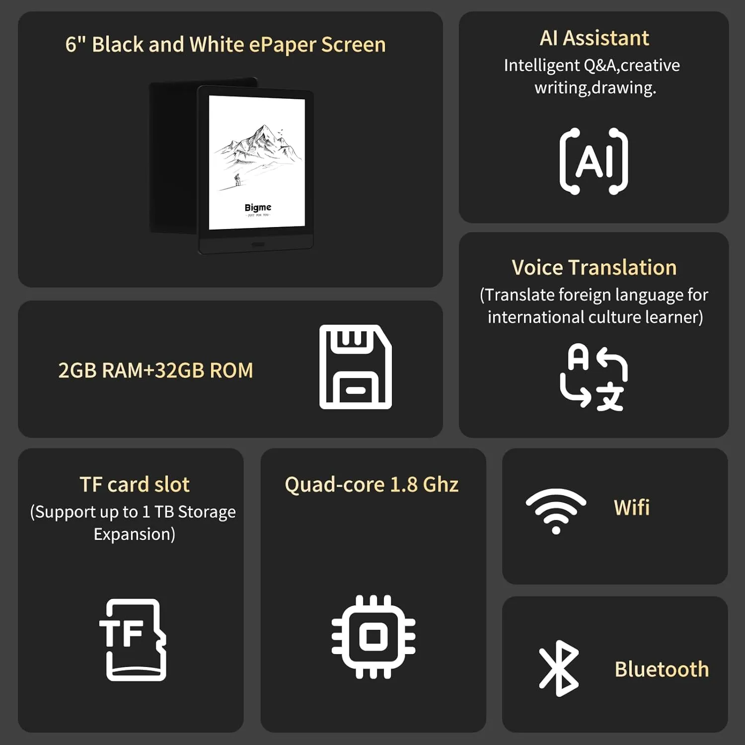 Bigme Read 6 inch Black and White Epaper Tablet