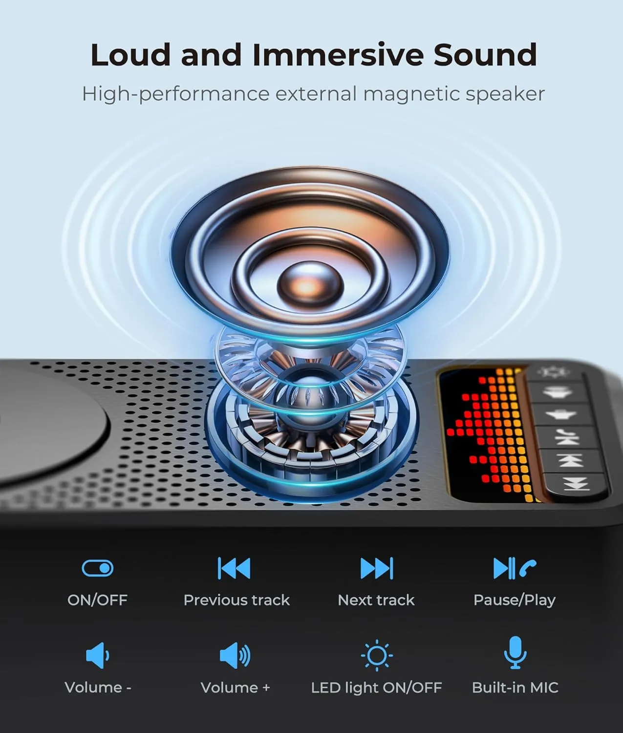 【5000mAh Long-lasting Battery】Equipped with a powerful 5000mAh rechargeable battery for ultra-long playtime, and doubles as an emergency power bank to charge your devices.