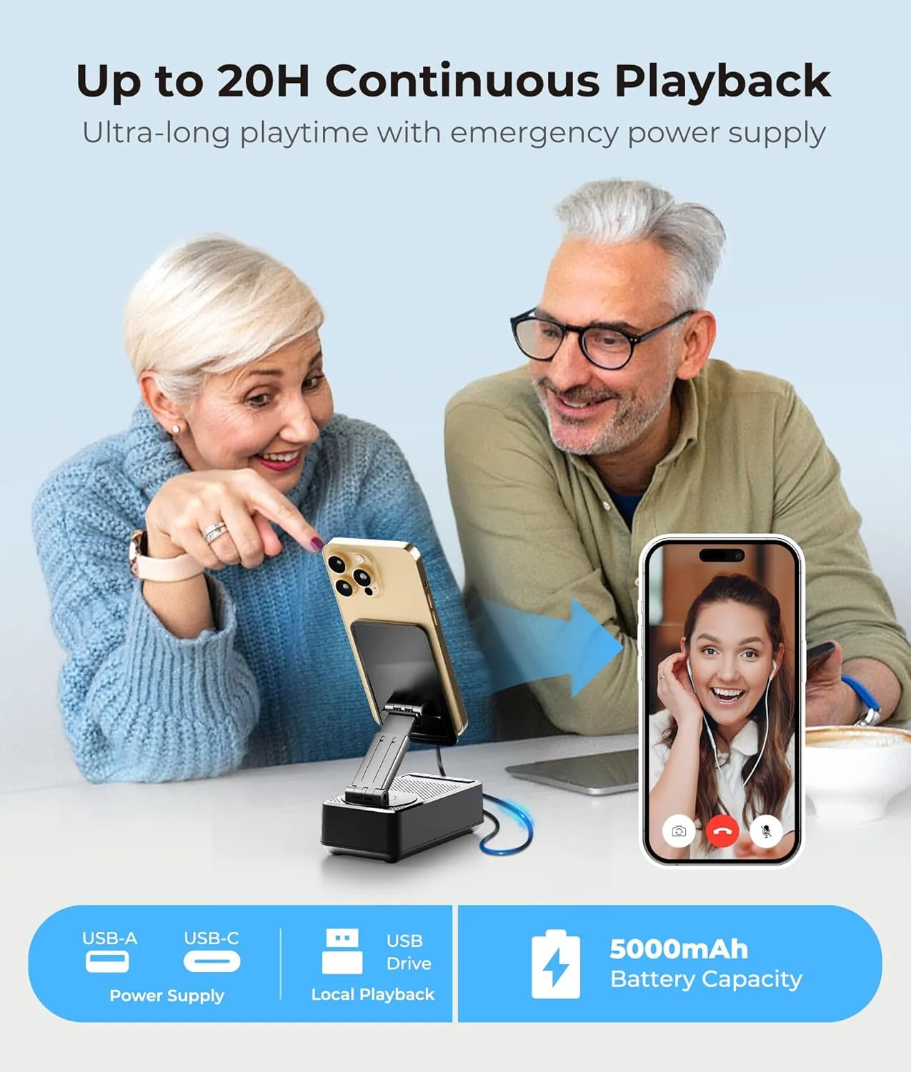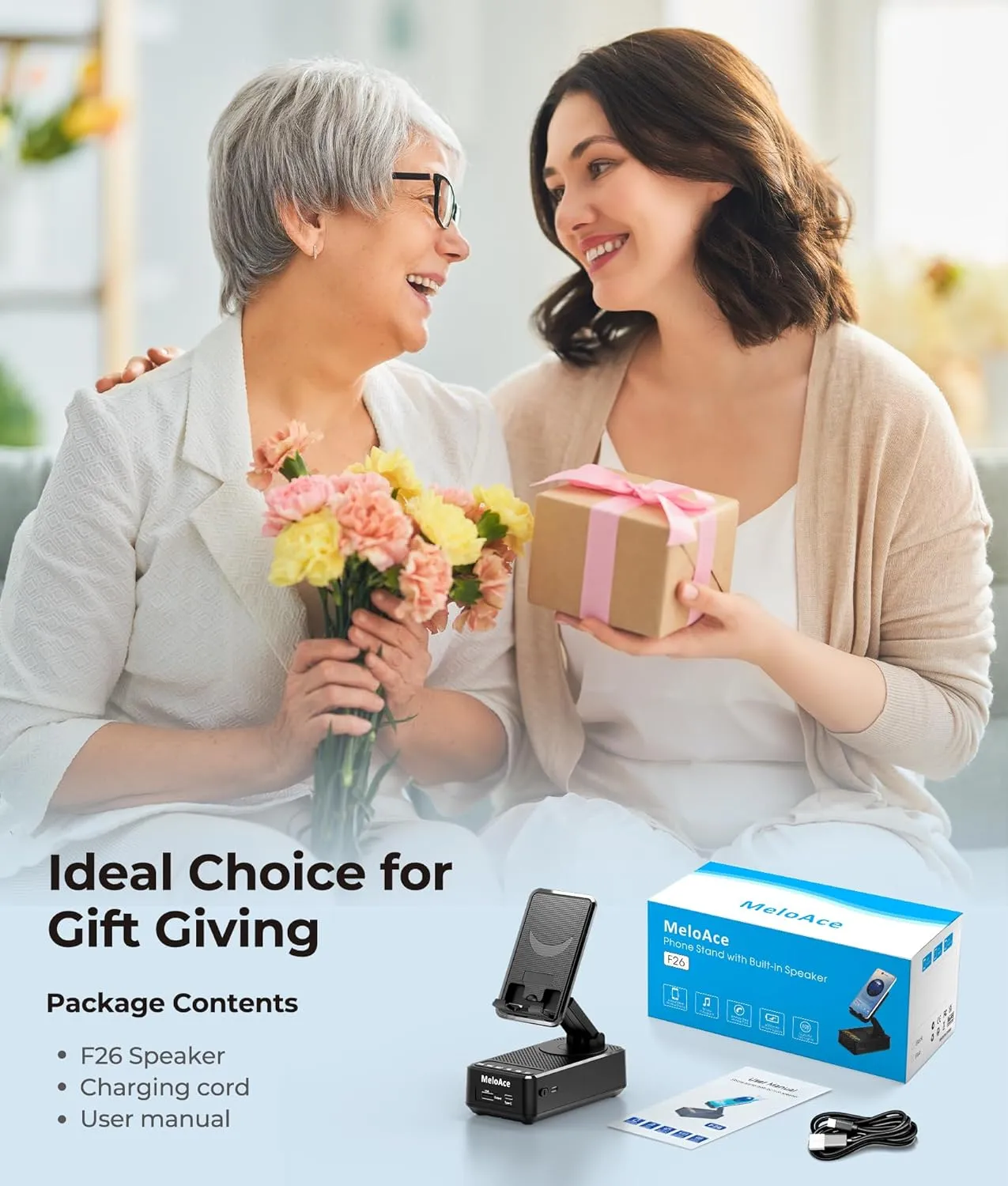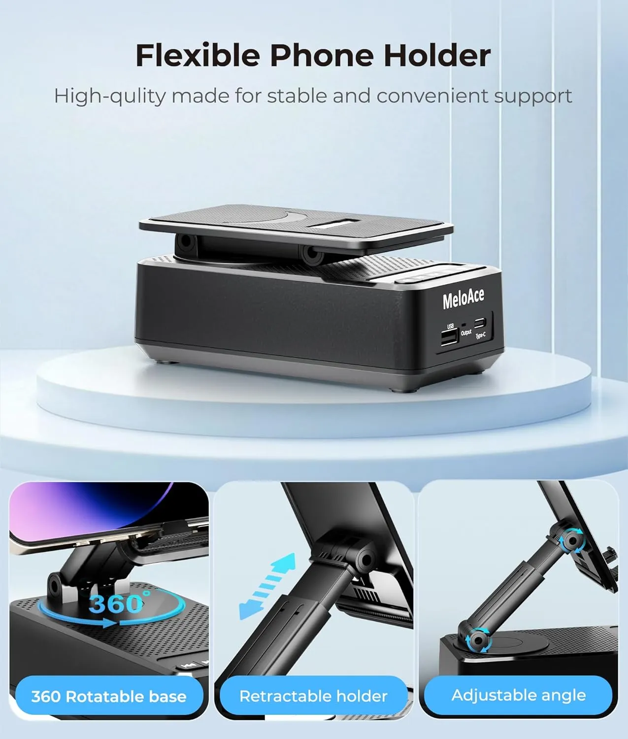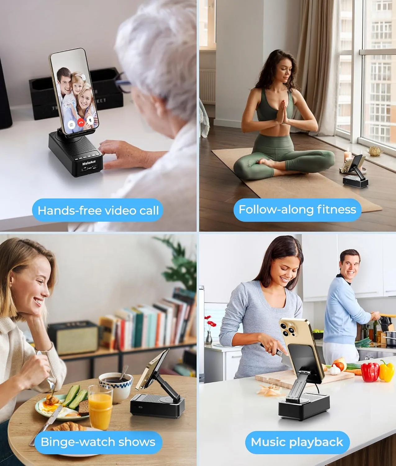 【2-in-1 Functionality】Combines a sturdy phone stand with a high-quality wireless Bluetooth speaker, offering the perfect solution for hands-free entertainment, video calls, or music playback.