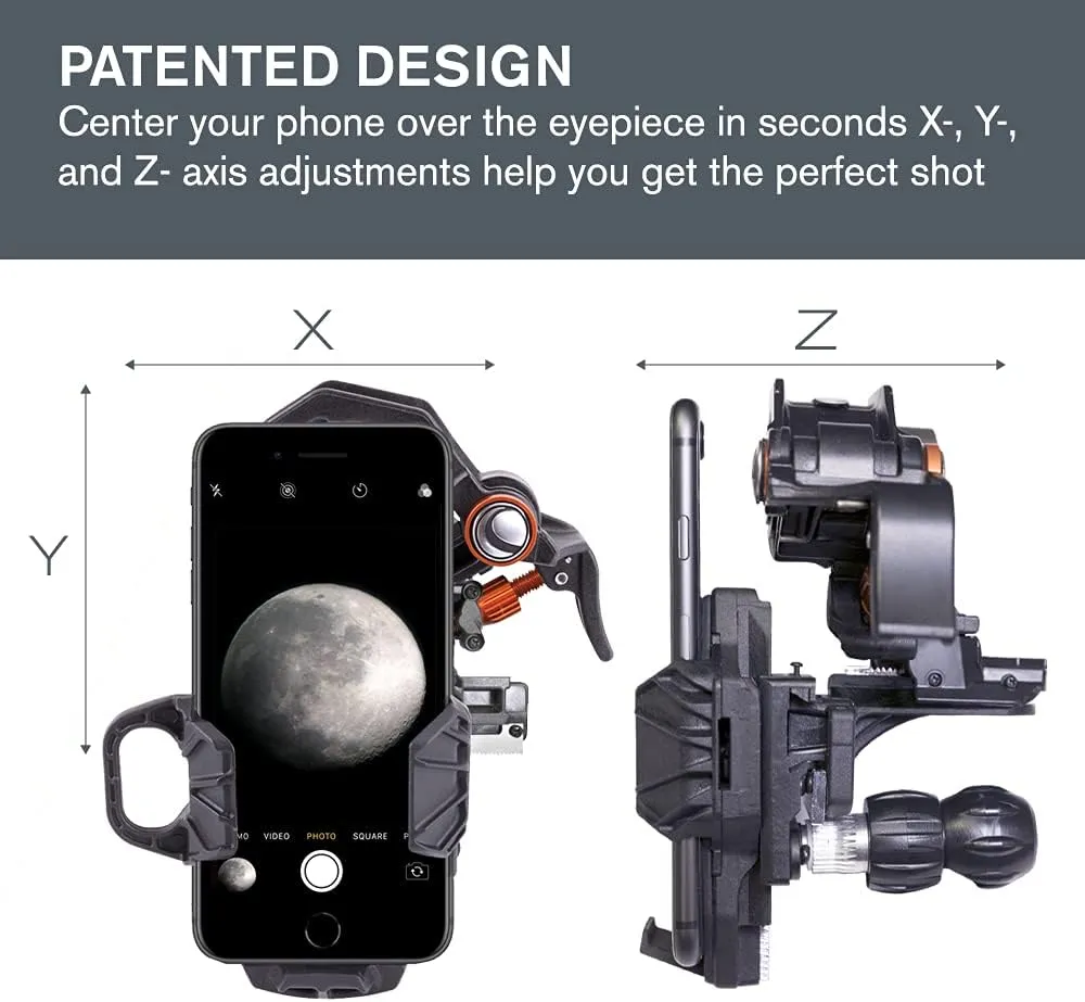 Celestron – NexYZ – 3–Axis Universal Smartphone Adapter for Telescope – Digiscoping Smartphone Adapter – Capture Images and Video Through Your Telescope or Spotting Scope