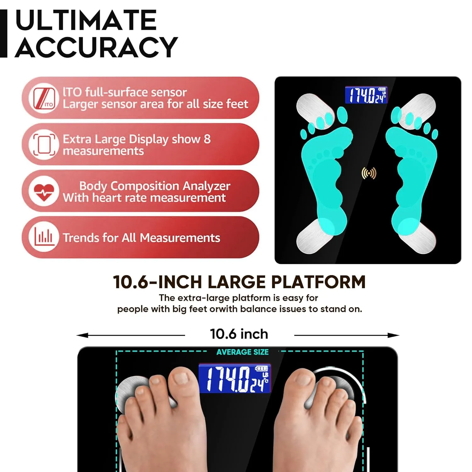 [Sleek Design and Portable] With its sleek and modern design, this body fat scale adds a touch of elegance to your house decor. Its slim profile and sleek finish make it a stylish addition to any home. And the USB charging function ensures hassle-free operation and ensures that your scale is always powered up and ready to provide accurate measurements