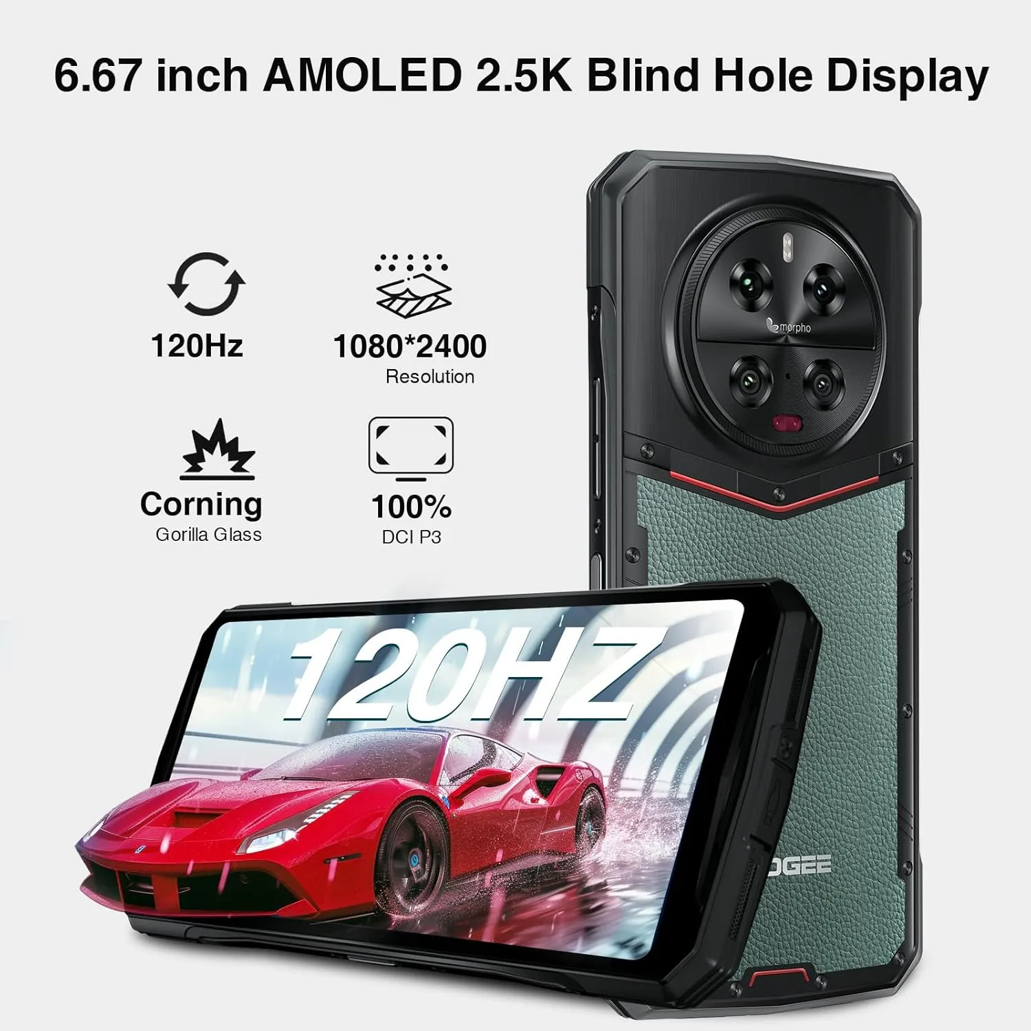 【6.67″120Hz 2.5K AMOLED Display】Professional Flagship-Grade Screen 6.67-inch Super Visual Screen and 2.5K Ultra-Visual Display for Delicate details Brilliant Colors,DOOGEE DK10 rugged phone unlocked AMOLED display presents true colors with professional color accuracy, precise borderless touch control, making operation much more natural.120Hz Dynamic Refresh RateDisplay As Your Visual NeedsExperience cinematic delight with DOOGEE DK10!