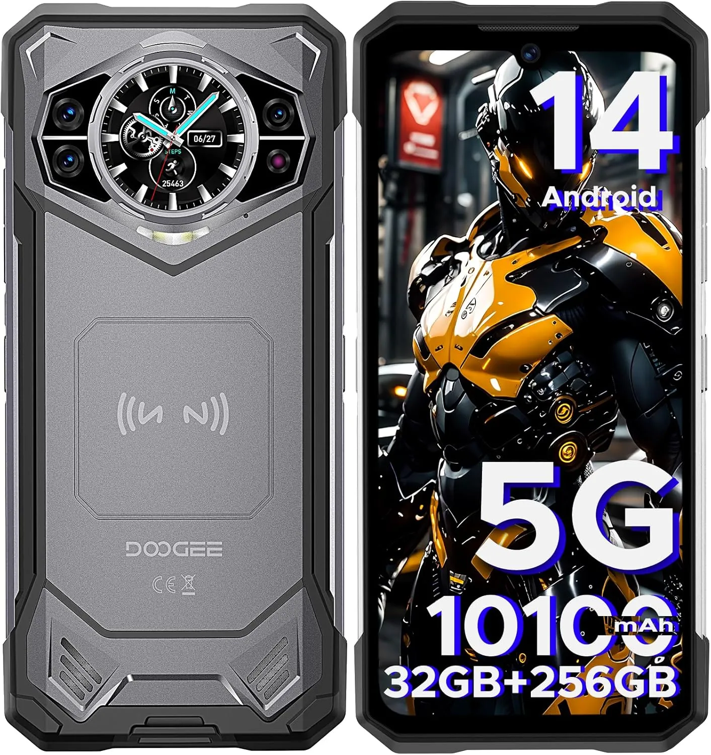 DOOGEE S200 5G Rugged Smartphone with 6.72” FHD+1.32″ Dual Screen,10100mAh/33W Rugged Phone Unlocked,32 GB+256 GB Cell Phone, Android 14,100 MP Camera/Fingerprint ID/Face Unlock/NFC/GPS
