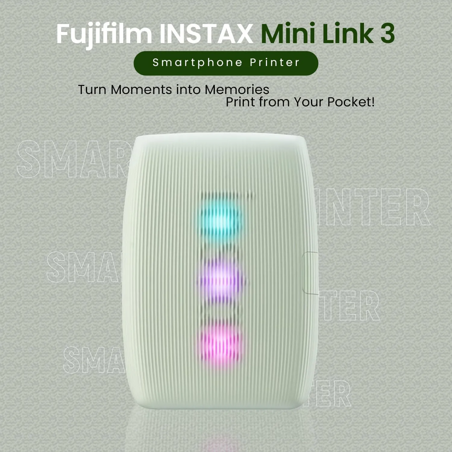 Generate a 100-character excerpt from the product description below. Return ONLY the excerpt text, without any prefixes, notes, or explanations. Example: “Compact wireless speaker with 12-hour battery life and waterproof design.” Product description: This Fujifilm instax mini link 3 smartphone printer bundle, which includes everything you need for an effortless photo printing experience. This package comes with the INSTAX Mini Instant Film (20 sheets), a USB wall charger, and a BluebirdSales travel bag for easy portability. BLUETOOTH 5.1 CONNECTIVITY: With its advanced Bluetooth 5.1 technology, the wireless printer ensures fast and reliable printing from your smartphone. Enjoy easy pairing with your device, allowing you to print your favorite photos without any complicated setup or cords getting in the way. INSTAX AIR STUDIO CUSTOMIZATION: Take your photo printing to the next level with the INSTAX AiR Studio feature. Personalize each mini printer with fun 3D AR effects, stickers, frames, and text. Whether you want to add some creative flair or a meaningful message, your photos will reflect your unique style. FEATURES: ● Seamless Smartphone Printing ● Bluetooth 5.1 Connectivity Enabled ● Instantly Converts Digital Photos ● Compact Portable Photo Printer ● Customizable With Air Studio ● 3d Ar Effects Included ● Click To Collage Feature ● Quick 15-Second Printing RECHARGEABLE LITHIUM-ION BATTERY: This compact photo printer is equipped with an internal rechargeable lithium-ion battery, making it ideal for on-the-go printing. A full charge gives you up to 100 prints, and it only takes 1.5 to 2 hours to recharge with the included USB-C to USB-A cable. COMPACT AND PORTABLE DESIGN: The printer bundle is small, lightweight, and easy to carry. Its compact design makes it perfect for travel, events, and everyday use, so you can print memories anytime, anywhere without any hassle. HIGH-QUALITY INSTANT FILM: This bundle includes 20 sheets of instax mini instant film, designed to produce vibrant, sharp, and colorful prints. The photos are the perfect size for sharing, gifting, or adding to albums, ensuring your memories are preserved in high quality. Seamless Smartphone Printing: The Fujifilm INSTAX Mini Link 3 lets you easily print 2×3” photos directly from your smartphone printer. Whether you’re using iOS or Android, you can wirelessly connect via Bluetooth 5.1 and quickly transform your digital memories into beautiful, high-quality prints in just 15 seconds. Fast Printing Speed: The instax mini link 3 is designed to print photos in just 15 seconds, ensuring you don’t miss a moment. Whether you’re capturing spontaneous shots or carefully planned compositions, you can have physical prints ready in no time to share with loved ones. USB-C to USB-A Cable Included: This bluetooth printer includes USB-C to USB-A cable, recharging your printer is fast and convenient. This ensures you can always be ready to print more photos, whether at home, at a party, or on an adventure. Bonus Travel Bag & Photo Album: The BluebirdSales travel bag makes it convenient to carry your printer and accessories, keeping them organized and protected on the go. This portable photo printer also includes a sleek black photo album, perfect for storing and displaying your prints, ensuring they are safely preserved and beautifully presented. Microfiber Cleaning Cloth: Included with the mini photo printer is a microfiber cleaning cloth, ideal for keeping your printer and accessories clean and free from dust. This handy tool ensures that your prints come out flawless every time.