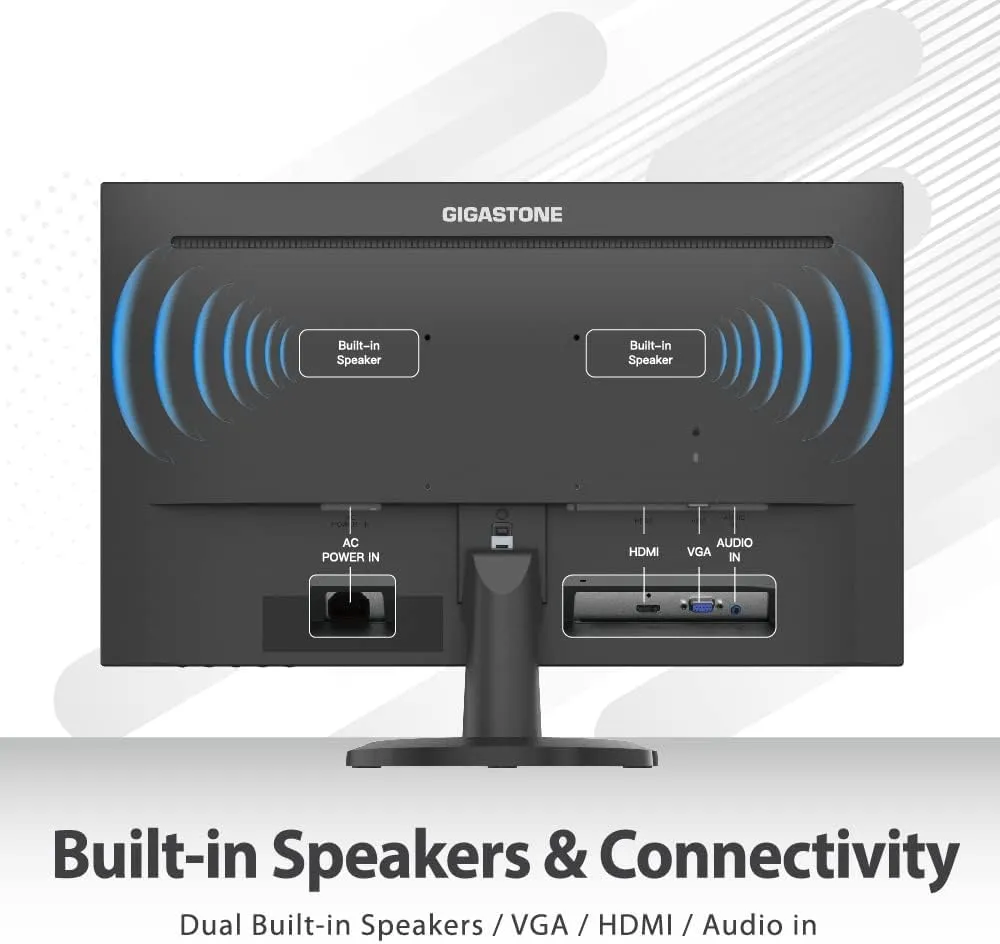 Gigastone 27” FHD Computer Monitor, Resolution: 1920 X 1080, Refresh Rate: 75Hz, Response Time: 5ms, Brightness: 250 cd/m2, Viewing Angle: 178°, Contrast Ratio: 1000:1, Connectivity: HDMI & VGA port, Blue Light Shift & Anti-Flicker Technology Gigastone brings every single size of monitor you may need: 21 inch monitor / 22 inch monitor / 23 inch monitor / 24 inch monitor / 27 inch monitor / 30 inch monitor / 32 inch monitor / 34 inch monitor