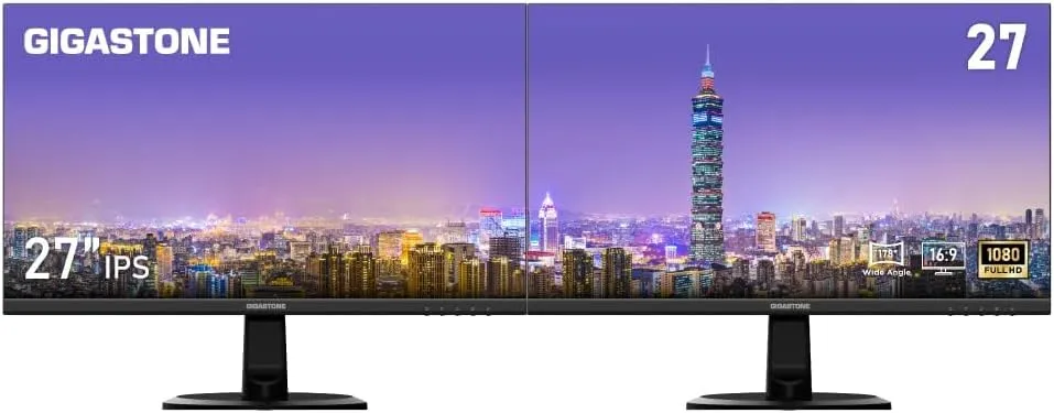 Gigastone 27 inch IPS LED Back Light Monitor 2-Pack 75Hz FHD 1920 x 1080, 178° Wide View Frameless, Dual Monitor, 5ms, Built-in Speakers, Eye Care Technology, Ergonomic Tilt VESA Mount, HDMI VGA