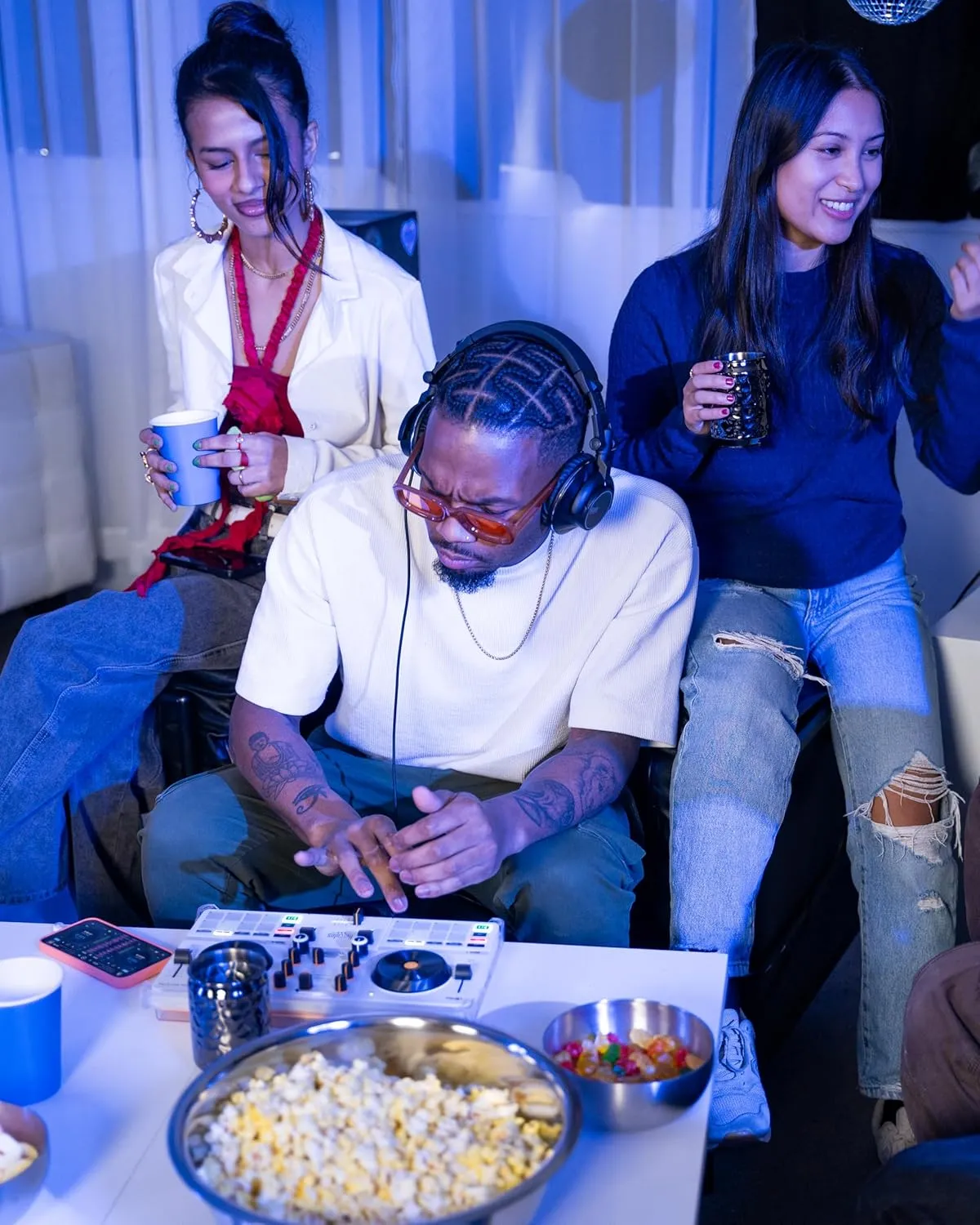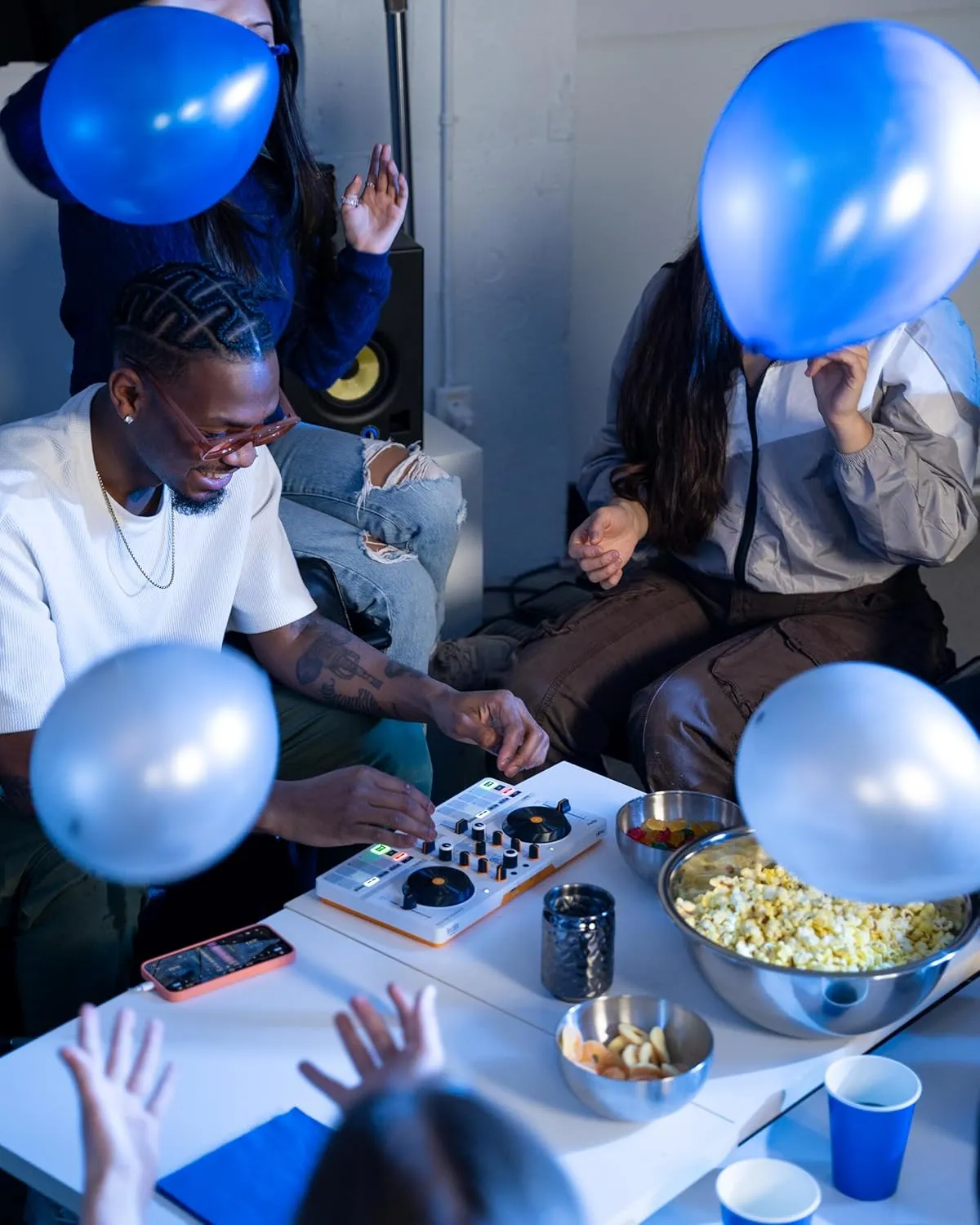 Generate a 100-character excerpt from the product description below. Return ONLY the excerpt text, without any prefixes, notes, or explanations. Example: “Compact wireless speaker with 12-hour battery life and waterproof design.” Product description: The ultimate ultra-mobile DJ controller for smartphone created for aspiring DJs, casual hobbyists, and those who want a fun, mobile experience. It’s a lifestyleoriented controller that is ideal for social gatherings, parties, or impromptu DJ sets. Anytime, anywhere, take it easy.