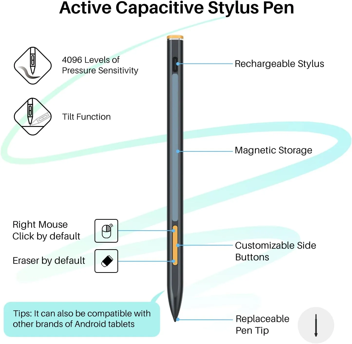 Animation Tablet with Rechargeable Pen: The computer graphic tablet is equipped with a rechargeable pen with 4096-level pressure sensitivity and tilt function, making strokes smooth and sensitive. Perfect for artists and designers who require high-performance tools. The pen also has a magnetic storage function to prevent loss.