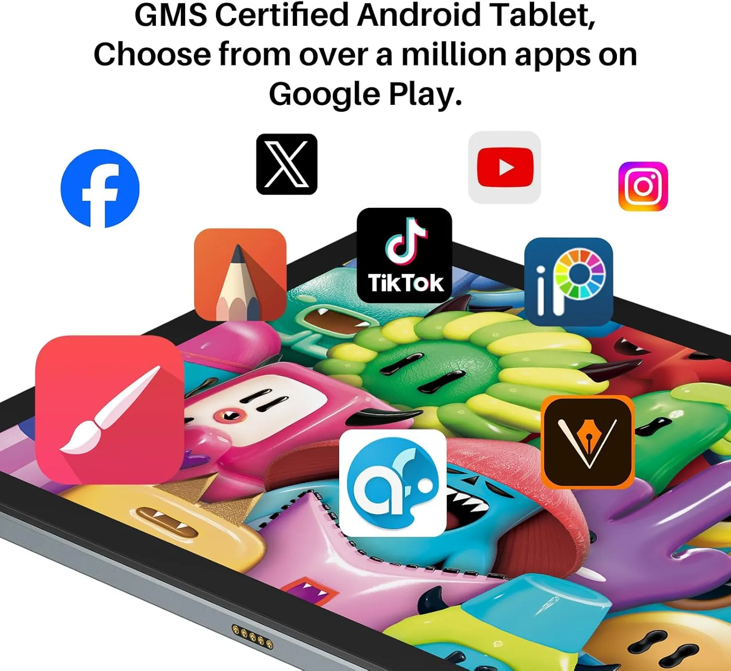 Powerful Performance & Storage: An 8-core CPU, 8GB of running memory, and 128GB of storage memory(expandable up to 512GB), With its exceptional processor, the computer tablet allows you to multitask without any lag. The 5 million front cameras and 13 million back with flash cameras capture every moment. You can also share your artwork with social media or your friends and family via built-in stable dual-band WiFi.