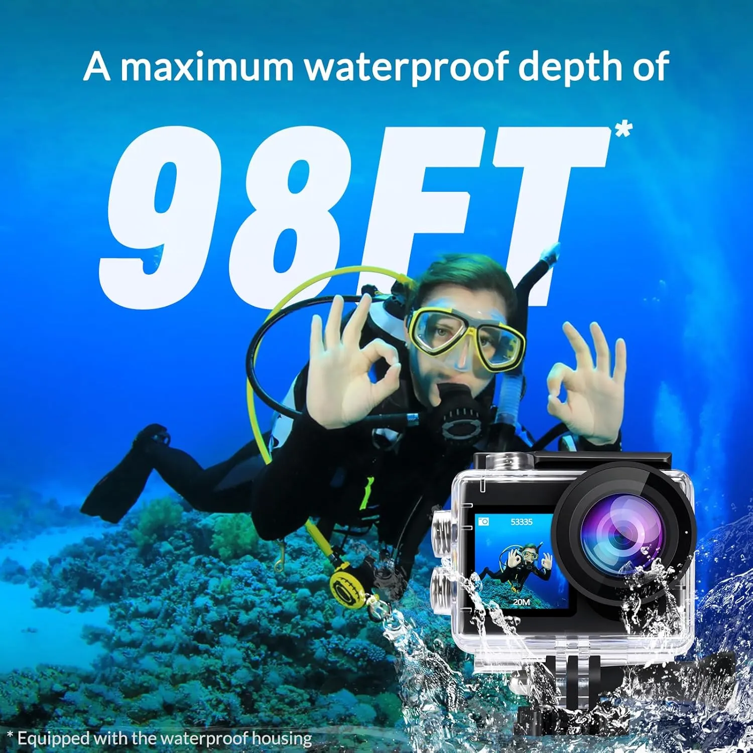 【98ft Waterproof Camera】- The 4K underwater camera is waterproof up to 98 feet (30M) and has an IP68 enclosure to ensure durability in challenging conditions. Whether you enjoy water sports such as swimming, surfing, and snorkeling, or take part in other exciting outdoor activities, this camera is the perfect companion for you. In addition, it comes with a range of free accessories to enhance your experience, making it suitable for both indoor and outdoor use. It should be noted that the accessory remote control needs to be waterproof before entering the water