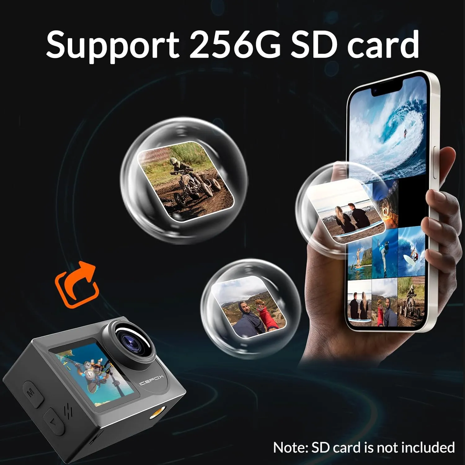 【Rich Accessories & Easy Installation】- Accessories Include icefox action camera, 2 x batteries, bicycle mount, 360° rotating screw, release buckles, and more. This action camera comes with all essential accessories for quick, easy setup. A perfect Mother’s Day gift for active moms who love capturing family adventures. Its versatile mounts let you attach it to your bike, helmet, or other gear.