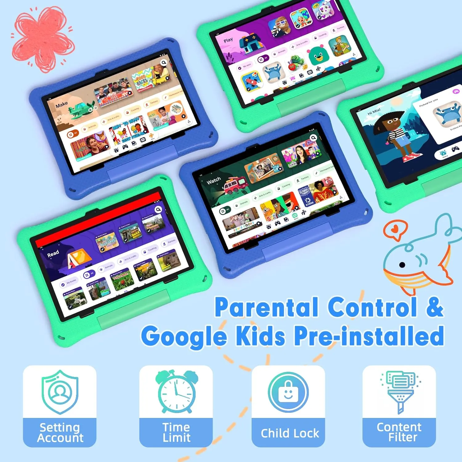 【Parental Controls & Preloaded Kids Apps】This kids tablet comes with built-in parental controls, allowing parents to create and customize personal profiles for children’s accounts, control screen time, and add safe apps and websites. Besides, this 10 inch tablet is GMS certified, and comes with Google Play & Kids Space pre-installed—giving kids the freedom to learn, explore, and grow in a secure environment. Peace of mind for parents, endless fun for children