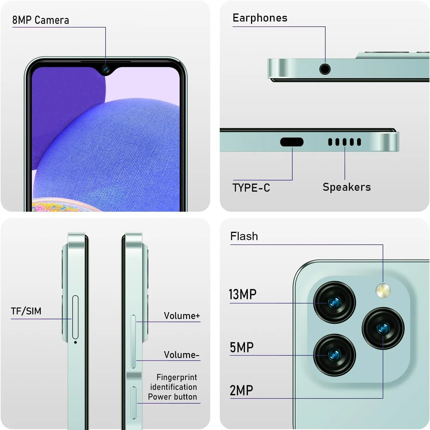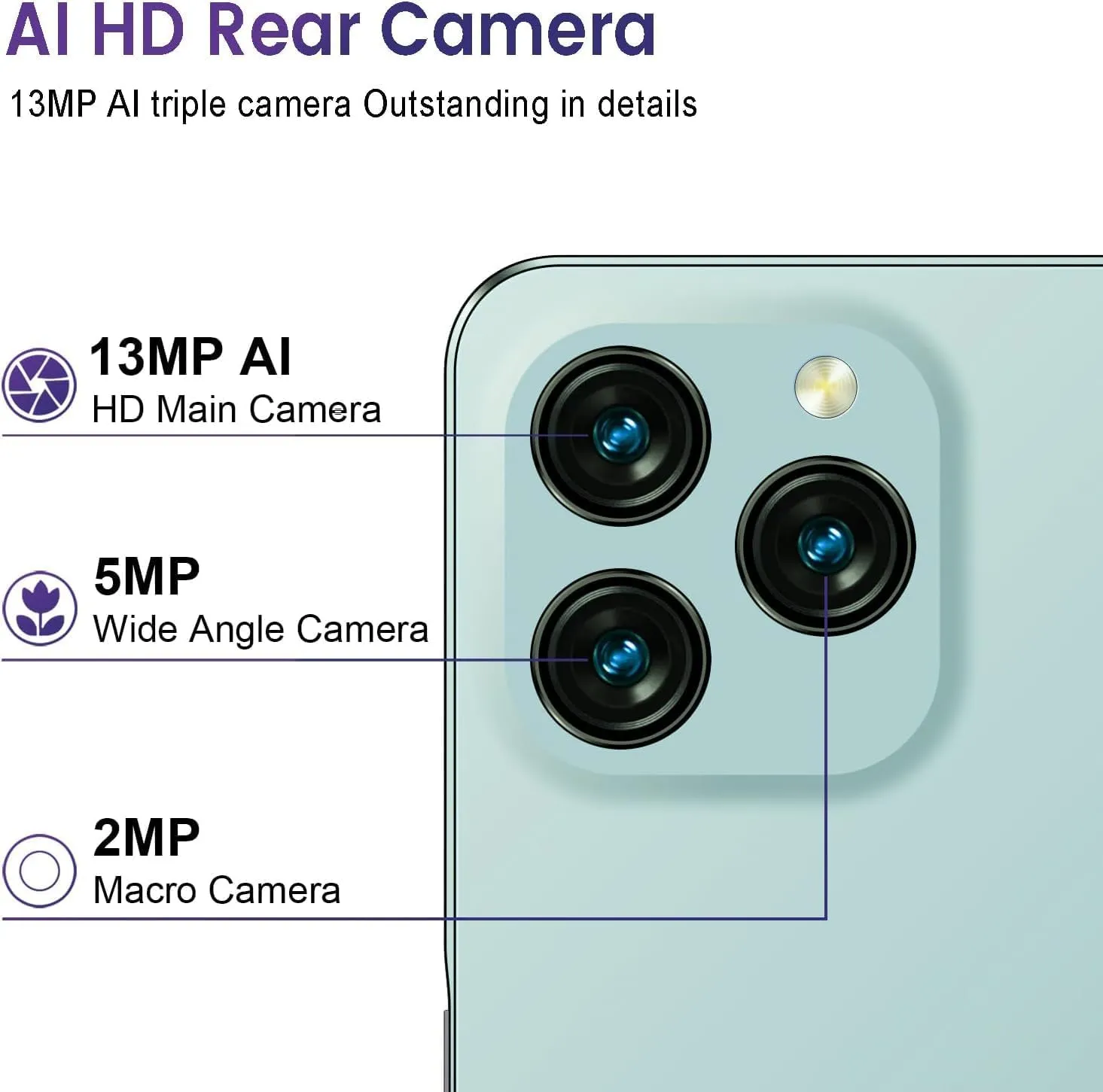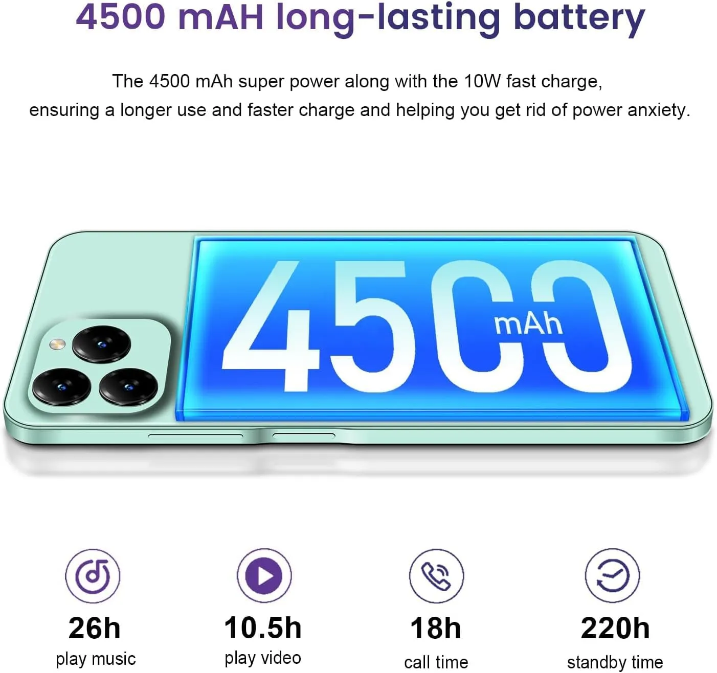 【13MP & 8MP Dual Camera + 4500 mAh battery】The smartphone comes with dual 13MP and 8MP cameras, with a front camera for even more beautiful selfies. The phone Equipped with a 4500 mAh battery, it has a large battery capacity for longer standby time, read messages, watch videos, use GPS and play games.