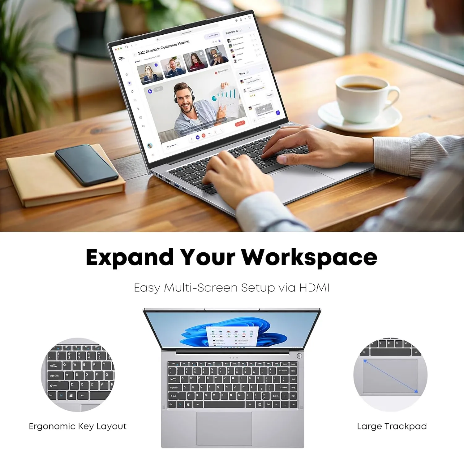 Travel-Ready Build: At just 1.53kg and 20mm thin with a space gray finish, this laptop easily slips into bags. Durable plastic construction balances weight reduction and structural integrity.