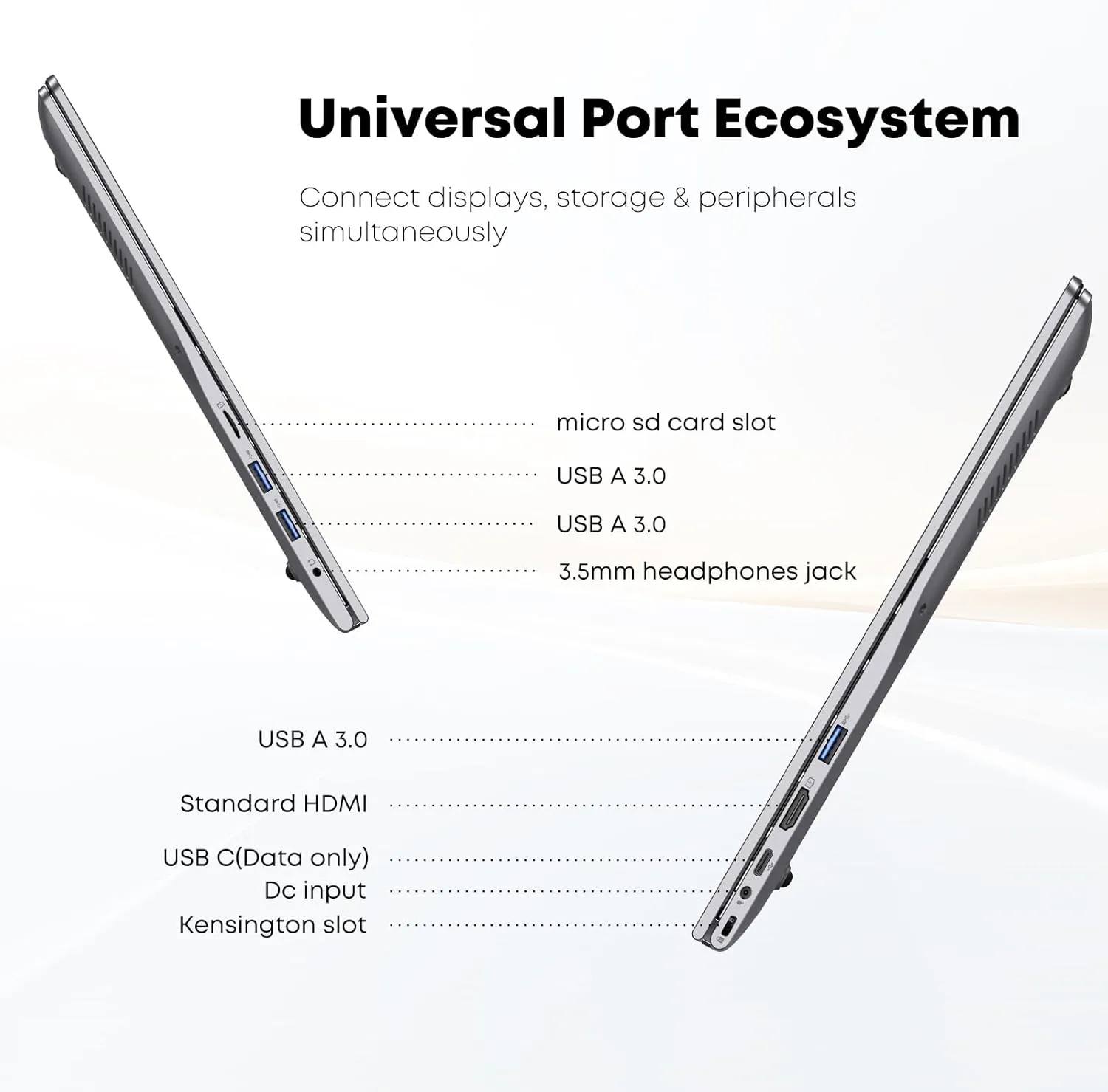 Comprehensive Connectivity: USB 3.0, HDMI, USB Type-C(data only)ports + WiFi 5 & Bluetooth 5.0 for versatile device connections.