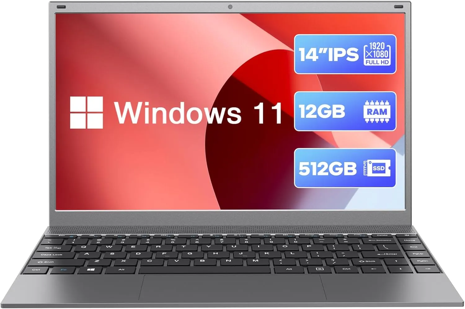 Laptop, Win 11 Laptop Computer, 12GB RAM 512GB SSD, Quad-Cores N4120 Processor, 14″ Full HD Win 11 Pro Laptops, Support 2.4G/5G WiFi, Bluetooth 4.2, USB 3.0, Long Lasting Battery