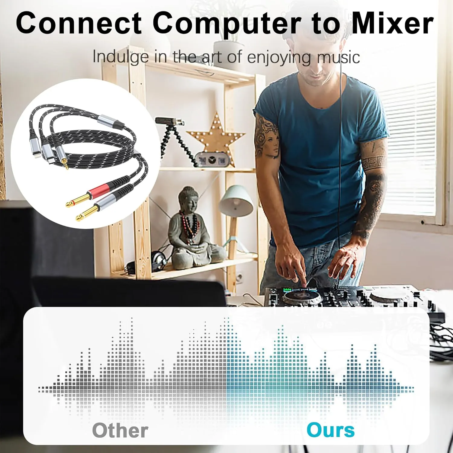 HIGH FREQUENCY SOUND QUALITY: This audio cable is made of high purity copper and multiple shielding to bring you pristine, pure sound, ensuring high fidelity sound quality and providing optimal signal transmission. All oxygen-free copper conductors minimize signal loss during transmission. The connection is more sensitive and stable.