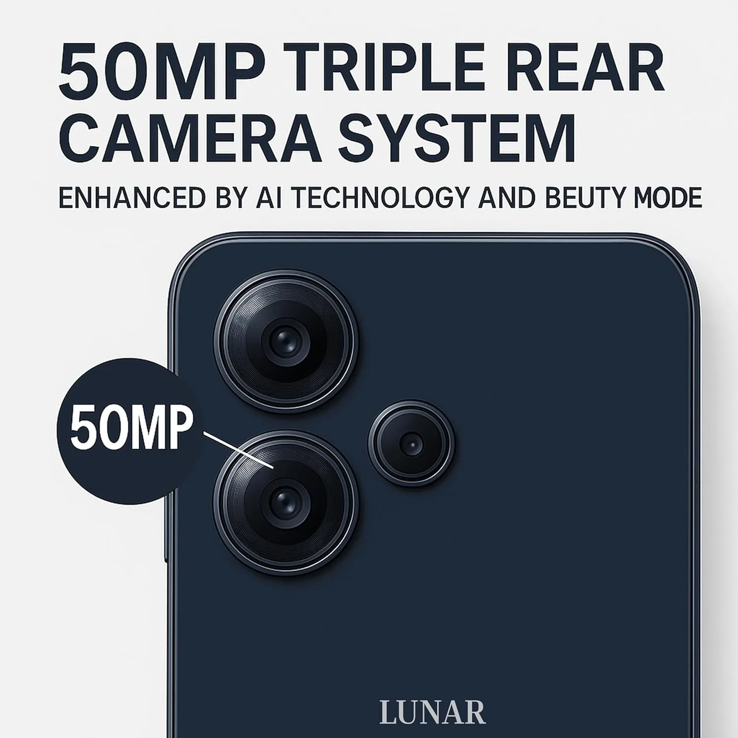 Versatile Camera System: Capture stunning photos and videos with the triple rear camera setup featuring a 50MP main sensor, 5MP ultra-wide, and 2MP depth sensor with AI capability and Beauty feature, plus a 16MP front camera for selfies.