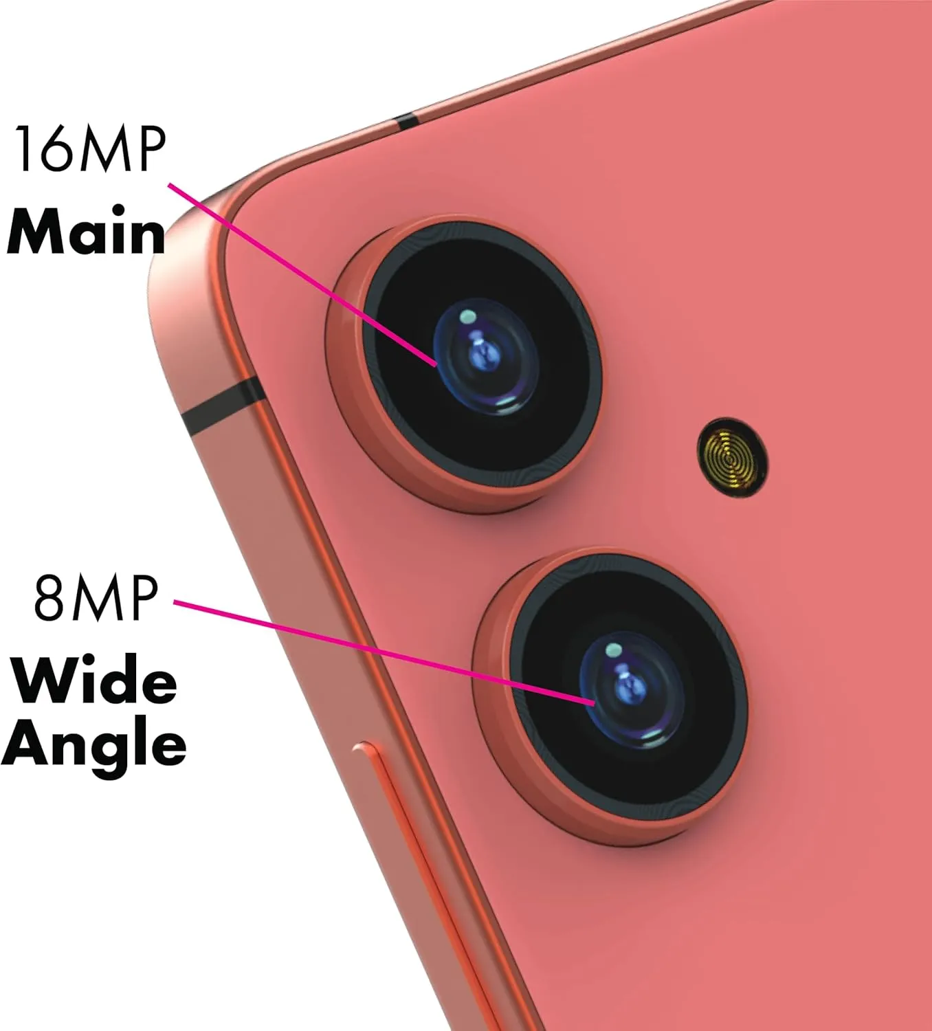 SELFIE MAGIC – CAPTURE YOUR UNIQUE VIBE With an 8MP wide-angle camera, this Android phone lets you showcase your style and fit more into every frame. It’s about making each moment count and reflecting your unique perspective. The 16MP main camera and 5MP selfie camera ensure high-quality photos and video calls, so your everyday shots are always dynamic, distinctive, and top-notch.