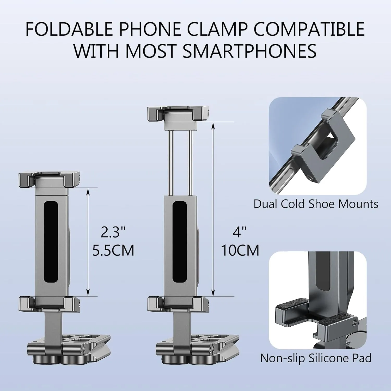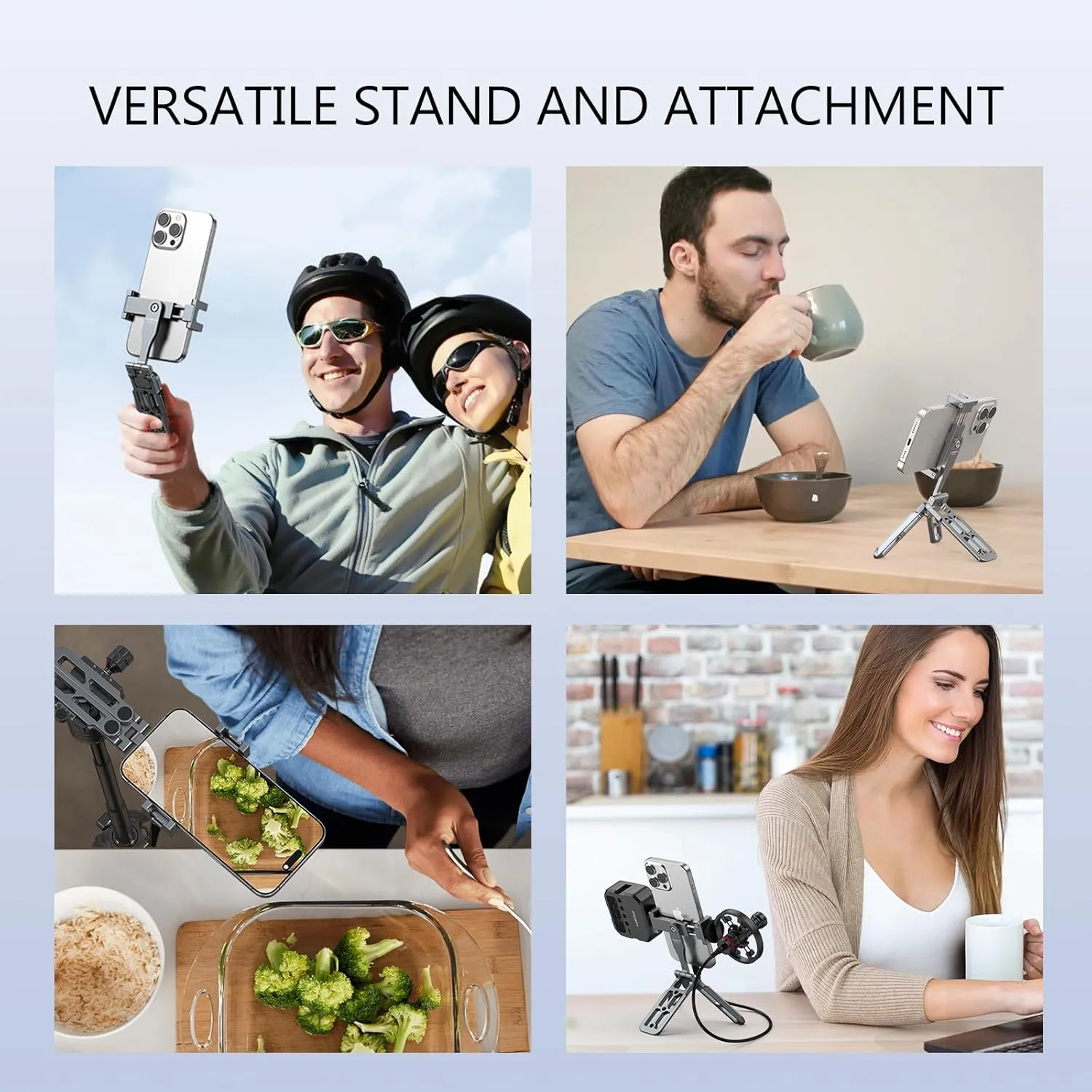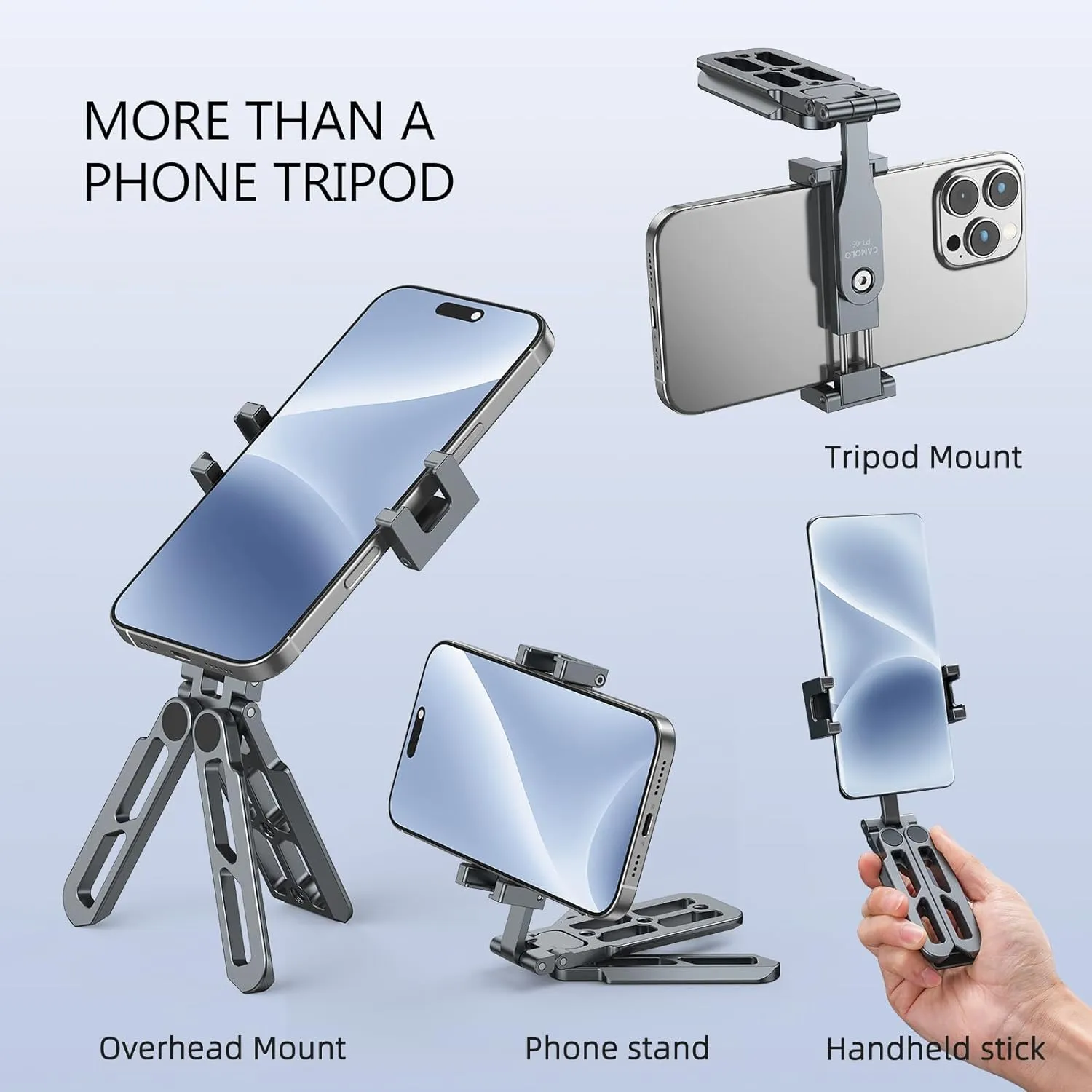 VERSATILE DESIGN: Foldable tripod stand designed specifically for smartphones with adjustable height and compact storage capability