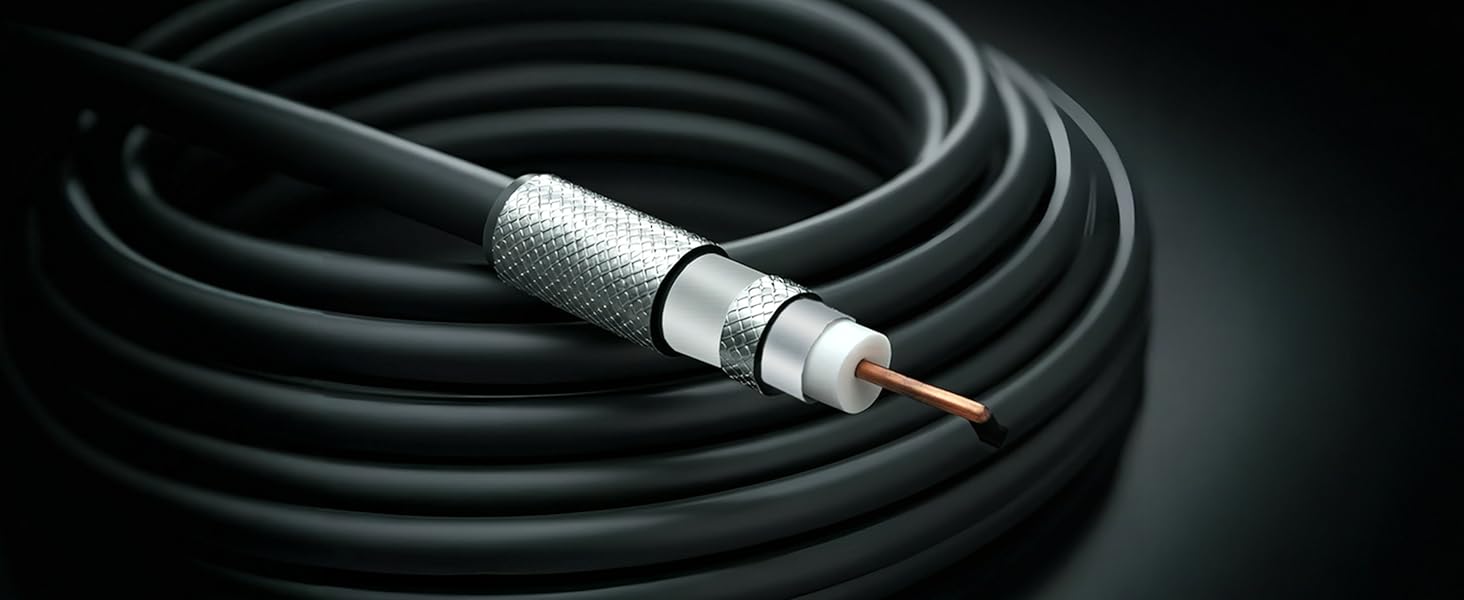 RG6 Quad Shielded Coaxial Cable RG6 quad-shielded coaxial cable thick, cylindrical cable