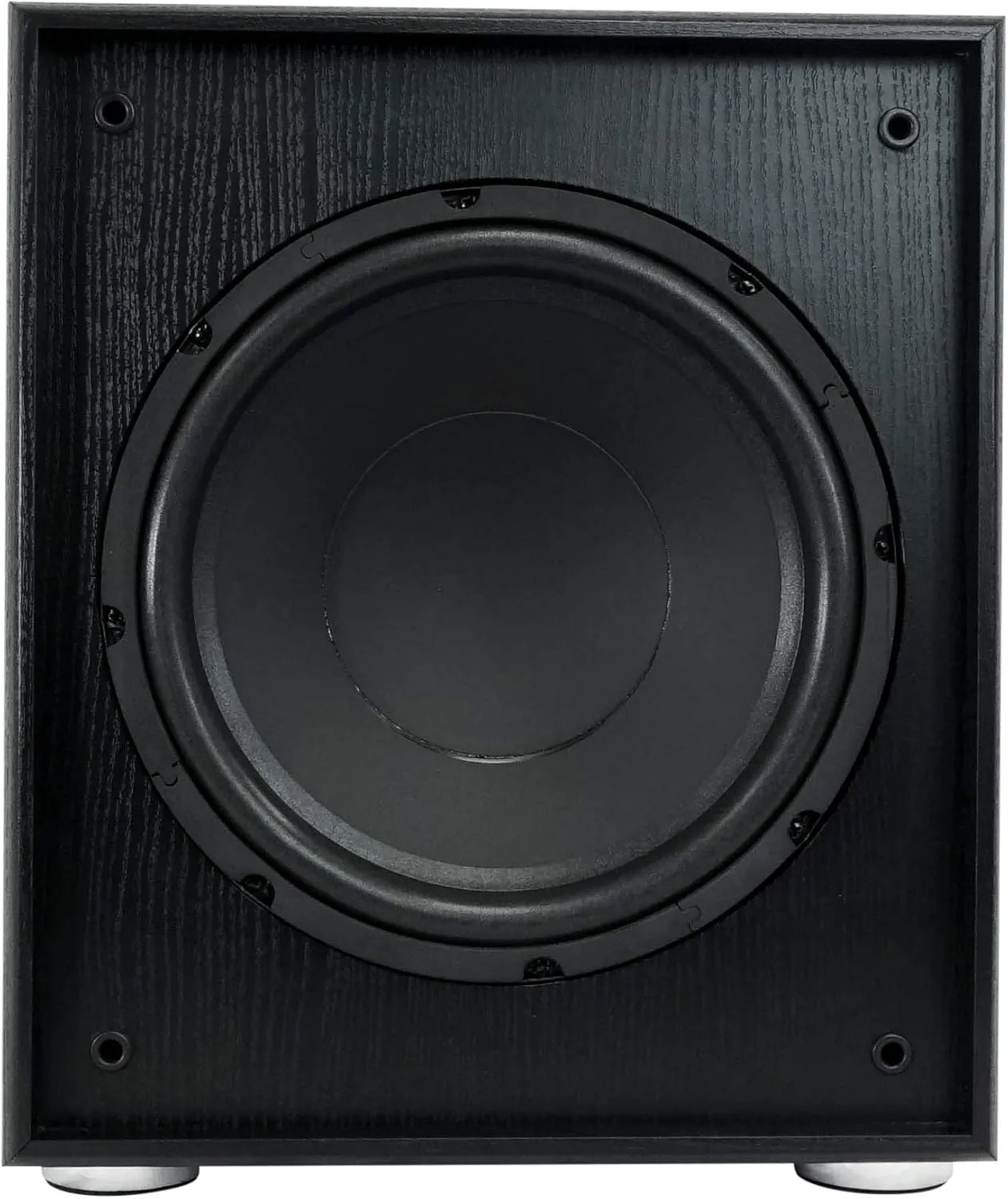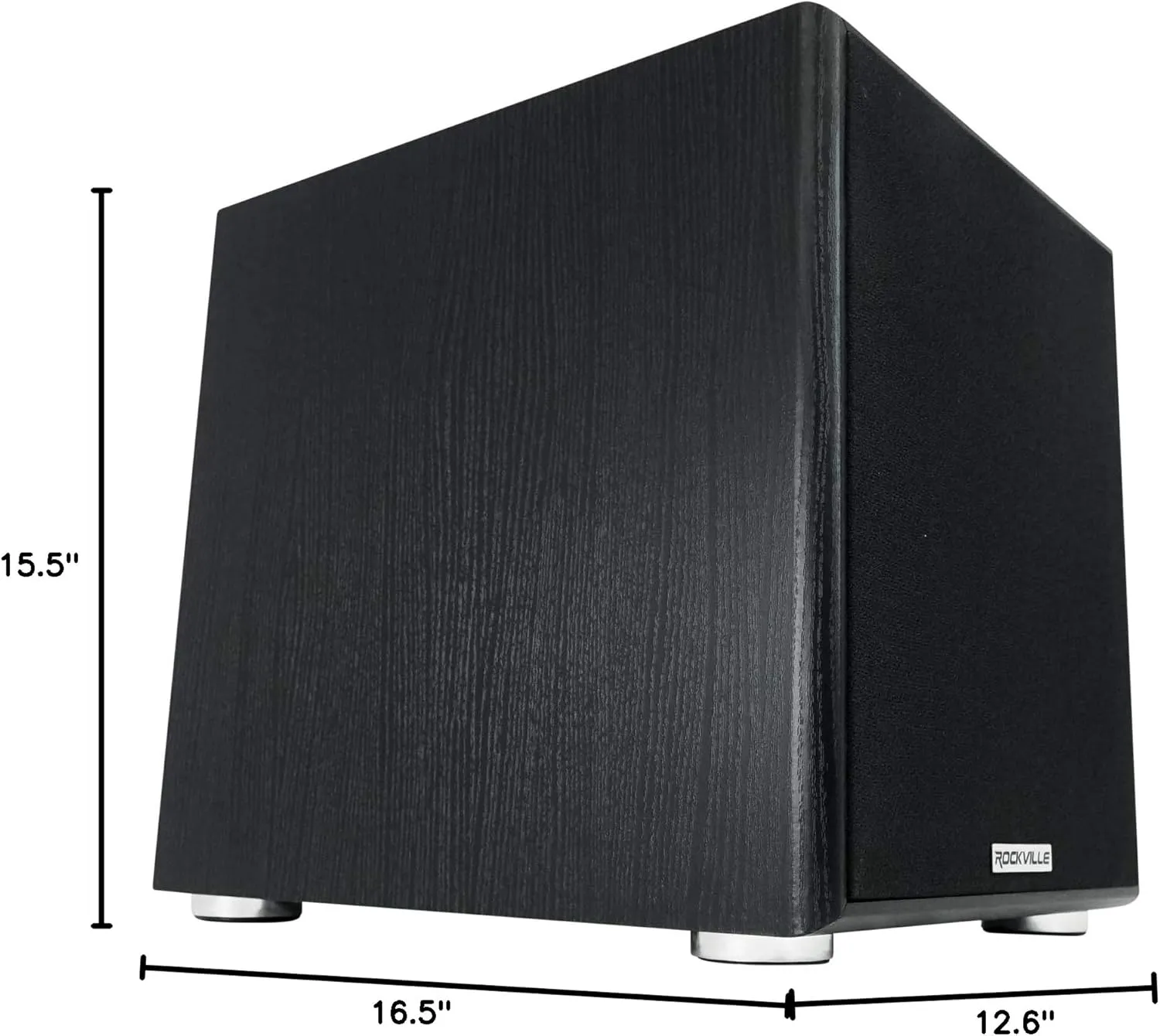 Features: Rockville Rock Shaker 10 Black 600 Watt Powered 10″ Home Theater Subwoofer, 600 Watts Peak / 300 Watts RMS, Built-in Class D Amplifier, Enclosure is made of top quality MDF wood. (MDF wood sounds better and lasts longer than particle board), High-grade vinyl enclosure covering with a beautiful finish, The enclosure is built with the perfect air space to maximize sound quality and punch, The rear firing port is engineered for optimal sound