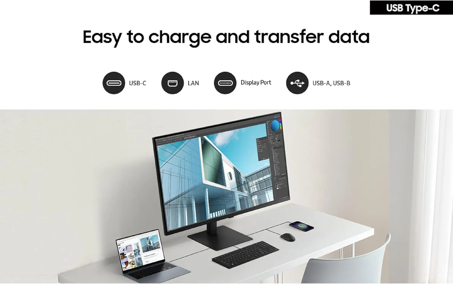 CONNECT AND ADJUST TO MEET YOUR NEEDS: Connect it all to elevate your workspace. A USB-C port allows up to 90W charging and data transfer at the same time, while a built-in LAN port offers seamless Ethernet connectivity for laptops.