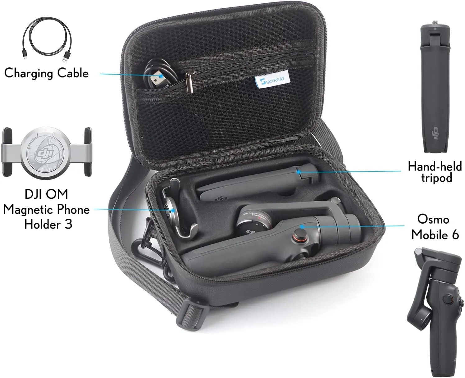 Custom Fit: Tailored to fit DJI OM 6 accessories like smartphone gimbal, magnetic phone clamp, grip tripod, power cable, storage pouch, and wrist strap.