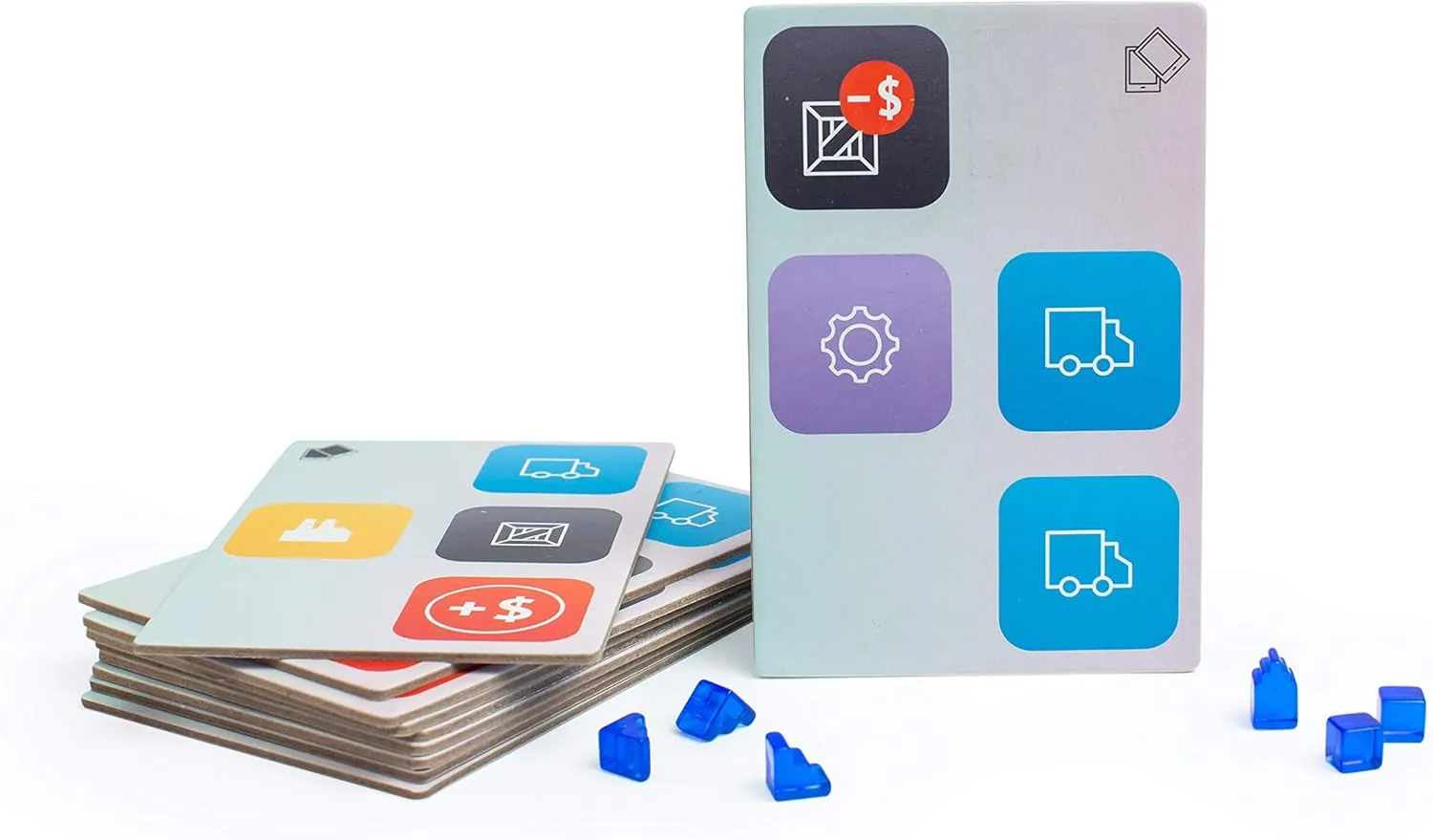 1 to 5 Players, Ages 14+, 60-90 Minutes – Over five rounds, players program their decisions about price, production, research, and expansion in order to earn more profits and become the most successful company in the world by earning more money than rivals.