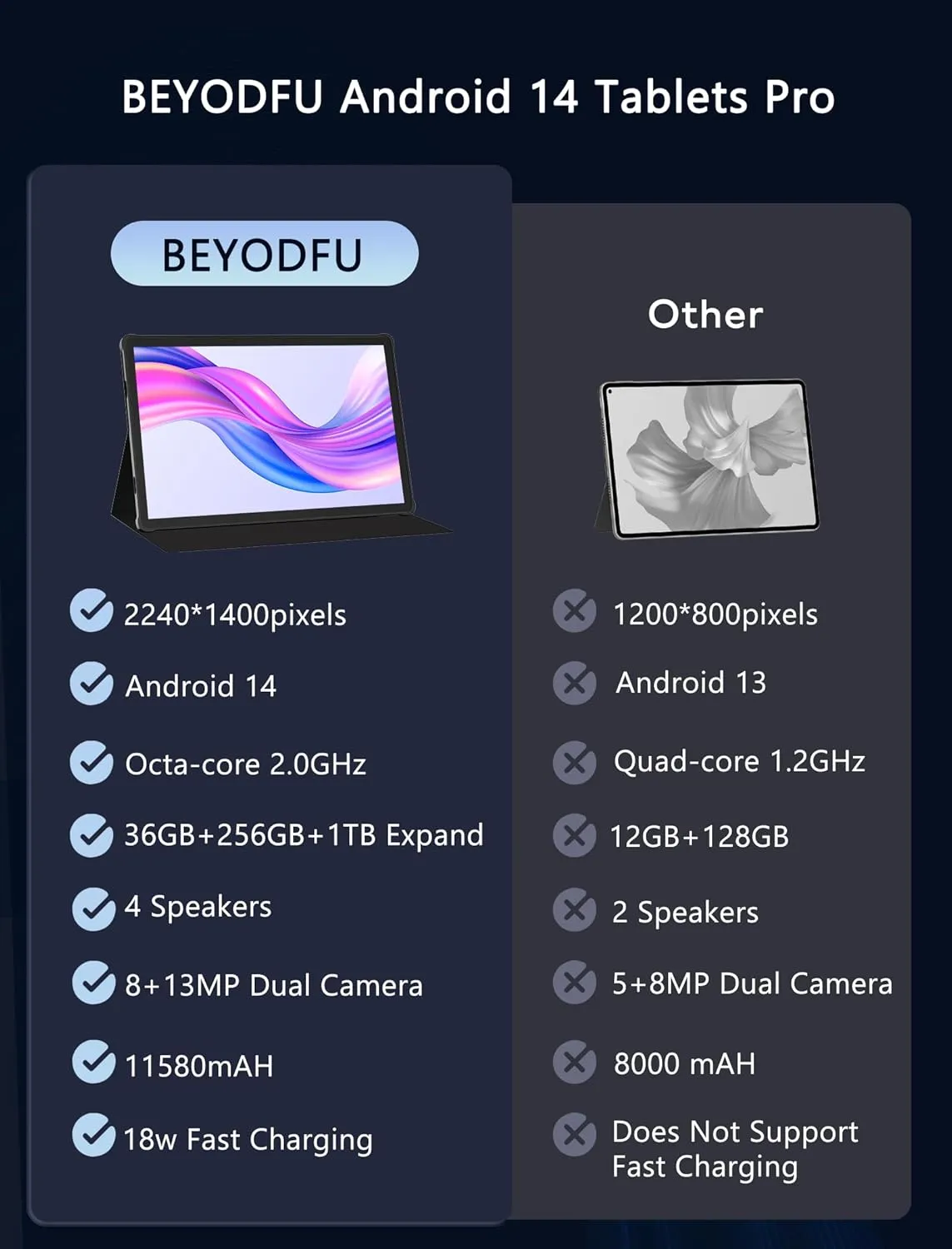 【Android 14 Productivity Beast】Experience the latest features and enhancements with the Android 14 operating system, enhanced with BEYODFU OS for improved productivity.Stay connected with dual-band Wi-Fi for fast and reliable internet access. Bluetooth 5.0 allows you to connect wireless peripherals such as keyboards, mice, and headphones in seconds.