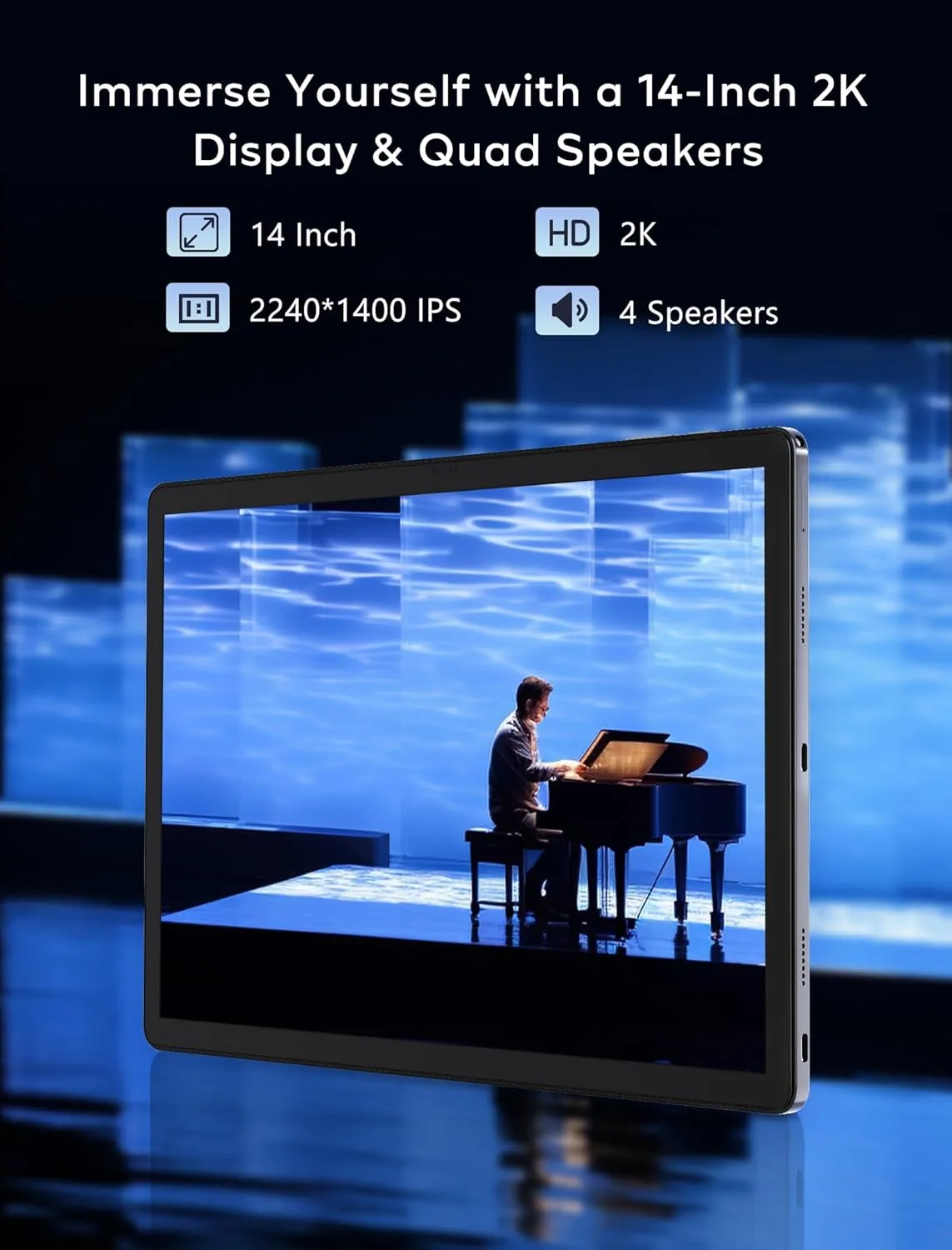 【Visual Brilliance Defined】Dive into breathtaking visuals on the vibrant 14-inch 2K IPS display. With a sharp resolution of 2240×1400, every image and video comes to life with stunning clarity and detail. Professionals will appreciate the exceptional color accuracy (ΔE<2), making this tablet ideal for graphic design, photo editing, and video production. The adaptive brightness adjusts automatically to your environment, ensuring comfortable viewing in any lighting conditions.