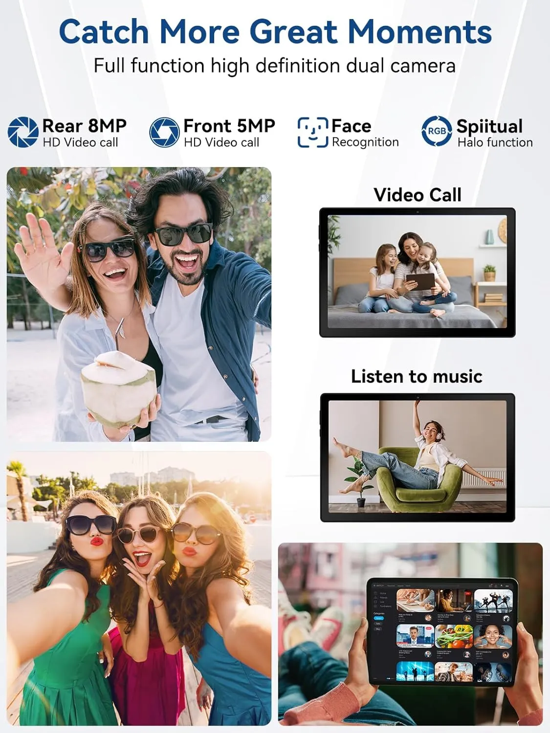 šćUltra Long Life, Fast Chargingć Not only does our tablet support Type-C fast charging, the included AI smart audio dock has magnetic contacts that also allow for fast wireless charging of the computer, and the dock can be on standby for up to a full 15 days or 5 hours of continuous playback of 1080P video. The tablet also features the latest 6th generation WiFi technology and upgraded Bluetooth 5.0.The dual-band integrated chip makes 5g WiFi and 2.4g WiFi more stable, and the latest Bluetooth 5.0 connectivity supports all of your favorite accessories, dramatically increasing data transfer speeds, boosting network capacity, and reducing network latency.