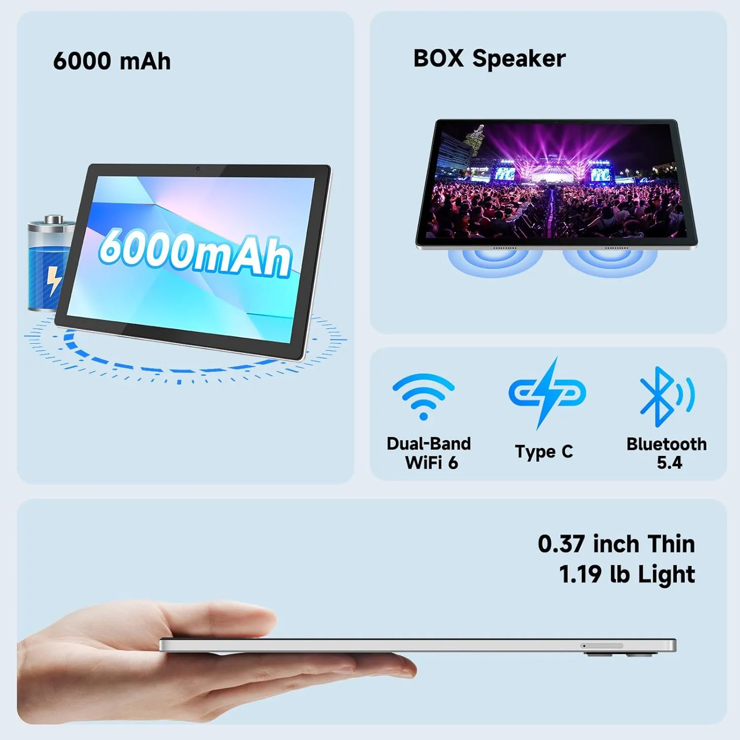 Ultra-Portable & Long-Lasting Battery: The ITMEIPC 10 inch tablet is ultra-portable at 0.37 inches thin and 1.19 lb. Equipped with a 6000mAh battery, it provides 7 days of standby and 5 hours of continuous use. Stay connected without constant charging. Perfect for travel and on-the-go use.