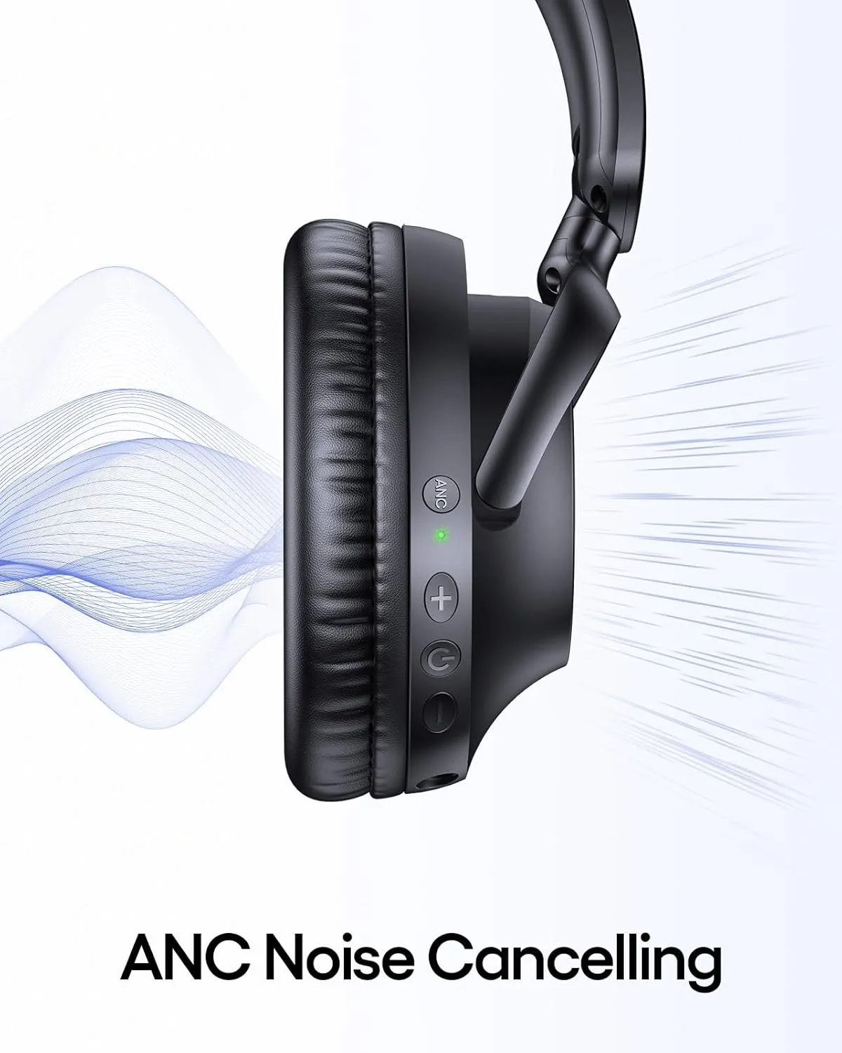 TAGRY Active Noise Cancelling Headphones 100H Playtime Over Ear Bluetooth Headphones with Deep Bass Light Weight Earphones Comfort Headsets with Fast Charging for Travel Home Office PC Black
