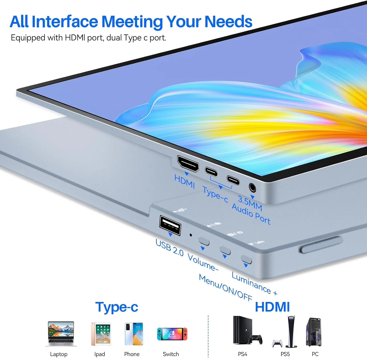 【10 point touch screen】Portable display with capacitive touch technology, responsive 10-point multi-touch display utilizing G+FF technology for increased accuracy and sensitivity. No additional applications or drivers are required. Simply connect the monitor to your device via the full USB-C port to utilize the touch functionality.