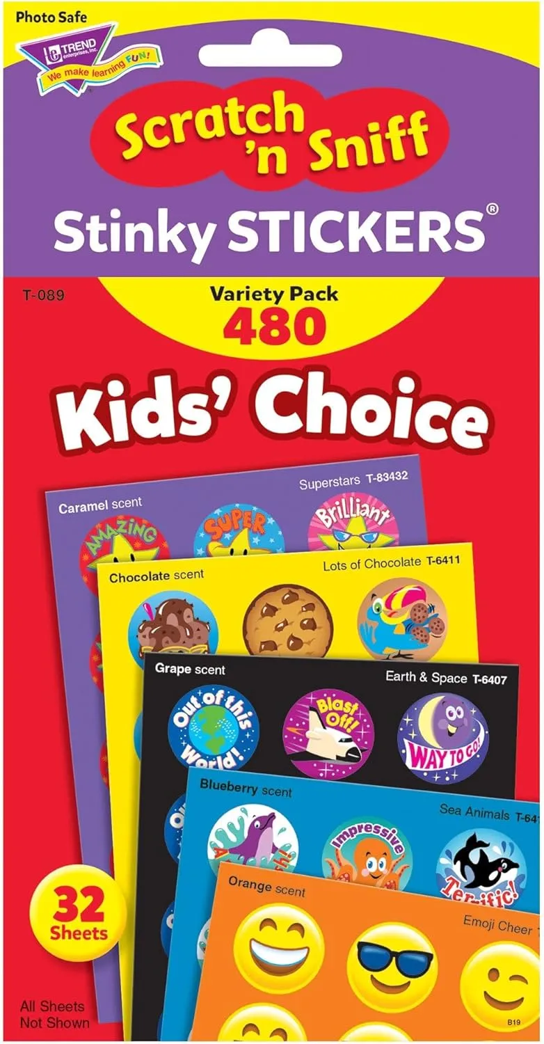 CELEBRATE AND MOTIVATE – Stinky Stickers have been a favorite reward for 40 years! Fun to collect, trade, and celebrate accomplishments and special occasions. Scratch and sniff again and again – the fun artwork and vivid scent brings joy for children and grownups alike.