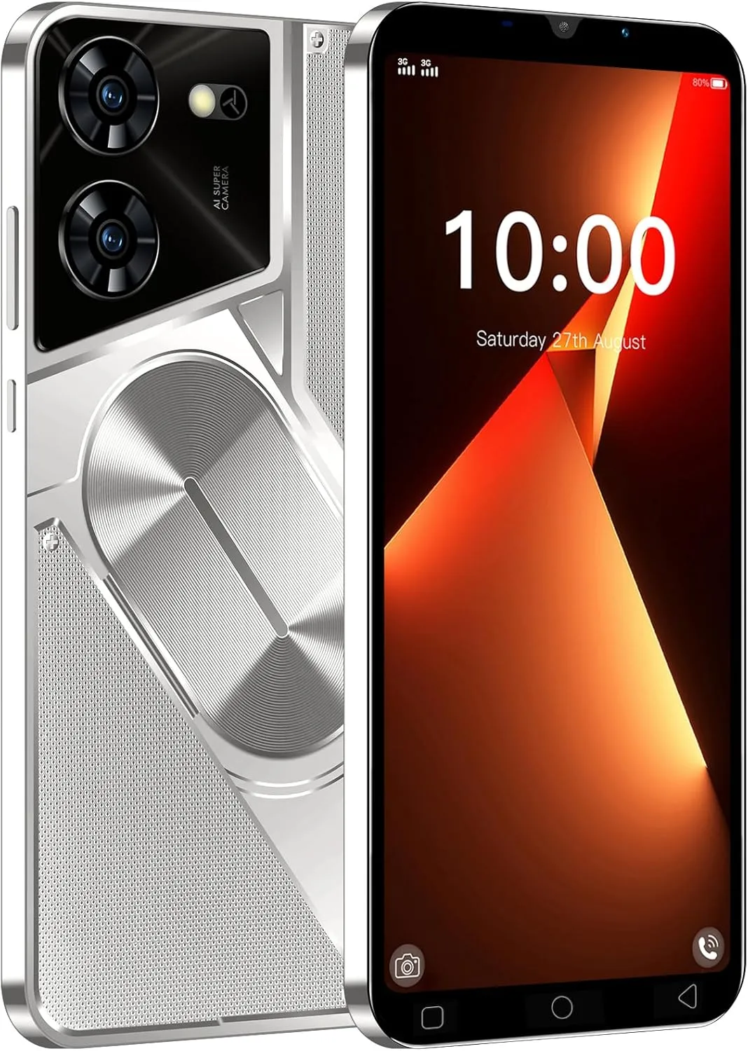 TryFirst Cheap Mobile Phones, 5.0 Inch IPS Display, Dual SIM Dual Camera, Quad Core, 16GB ROM【Expandable up to 128GB】, Support WiFi/Bluetooth/FM, Face Unlocked (Pova5Pro-Silvery)