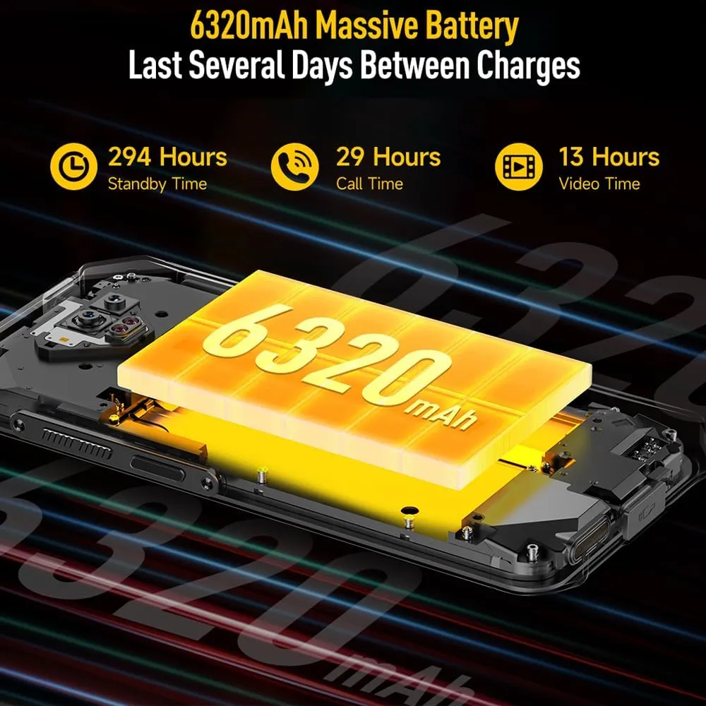 No worry for running out of battery, battery capacity of Armor X 13 is a massive 6320mAh for a more secure longer periods outdoor. Reverse charging function will help when watches, smartphones or earbuds are completely drained without access to charger.