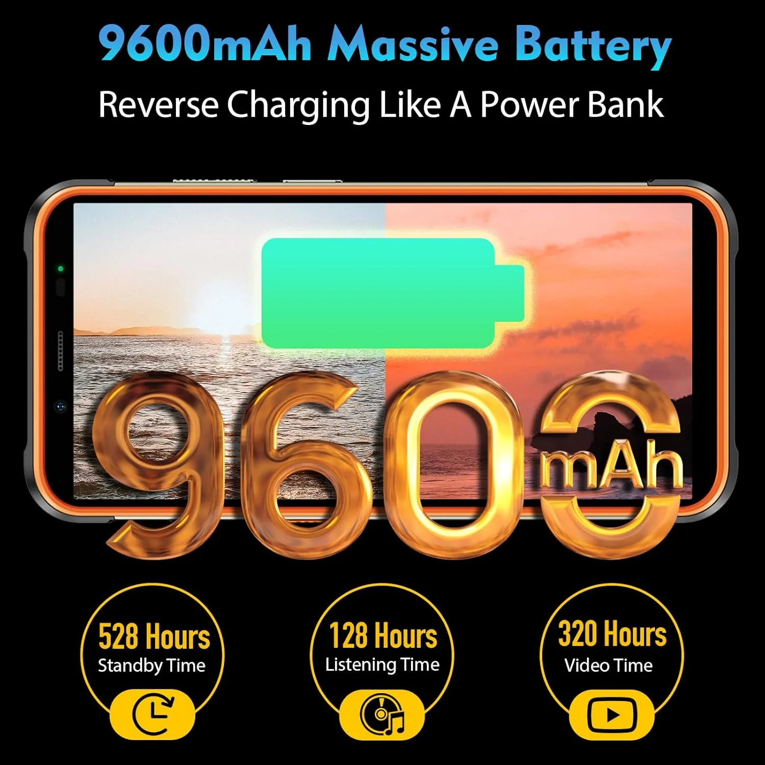 【9600mAh Battery & Dock Charging】The super large 9600mAh battery powers the handset with 528 hours standby time and 52 hours call time. Besides, OTG reverse charging is supported for smartphones, laptops, etc. With 5V/2A output, it is not only a dock charger, but also a phone holder(🧡The dock charger sold separately).